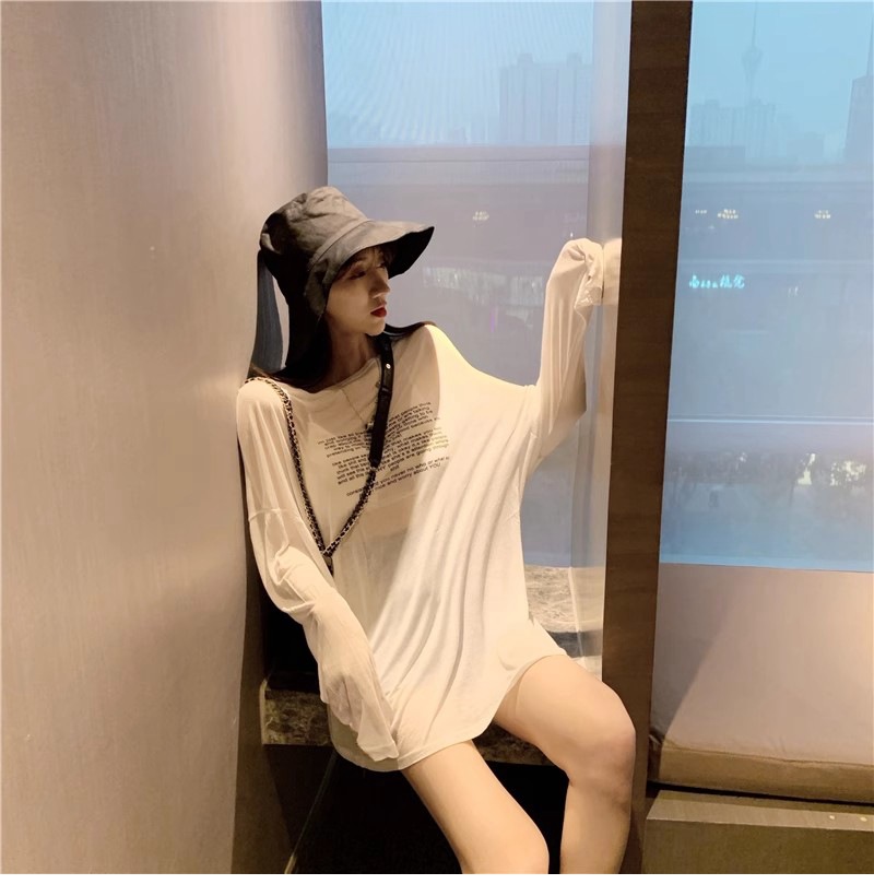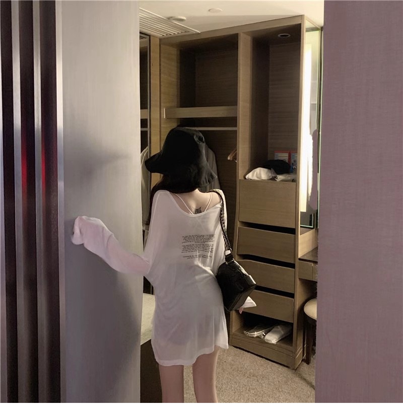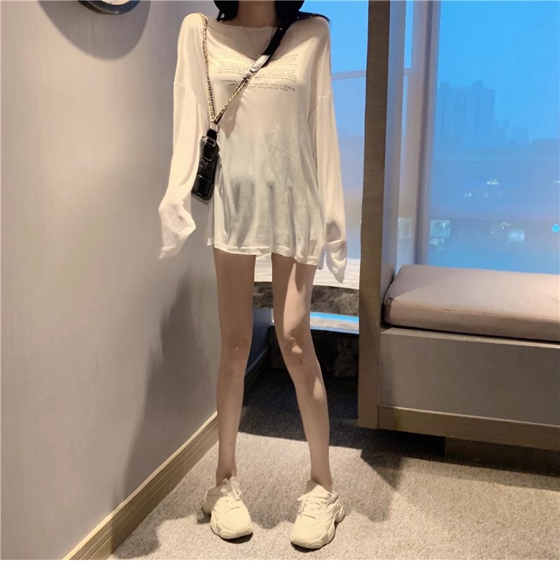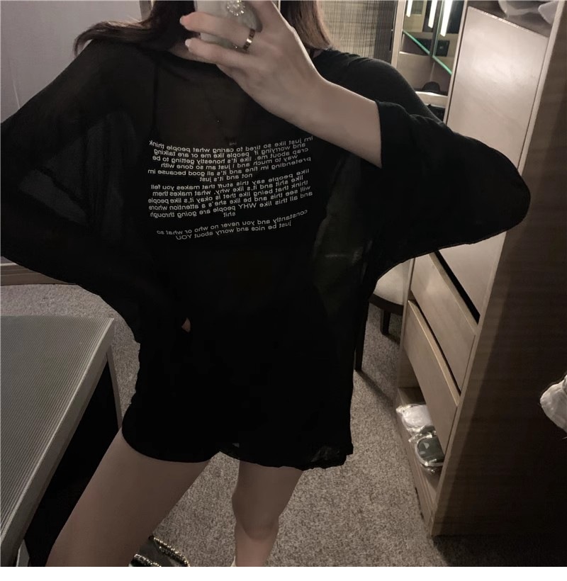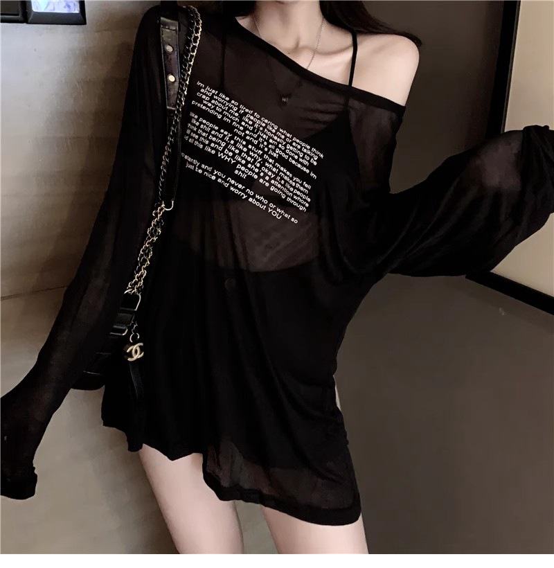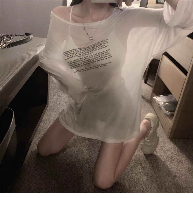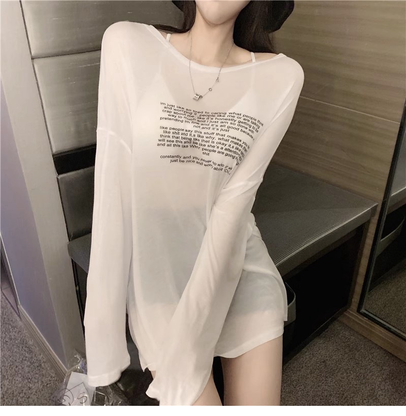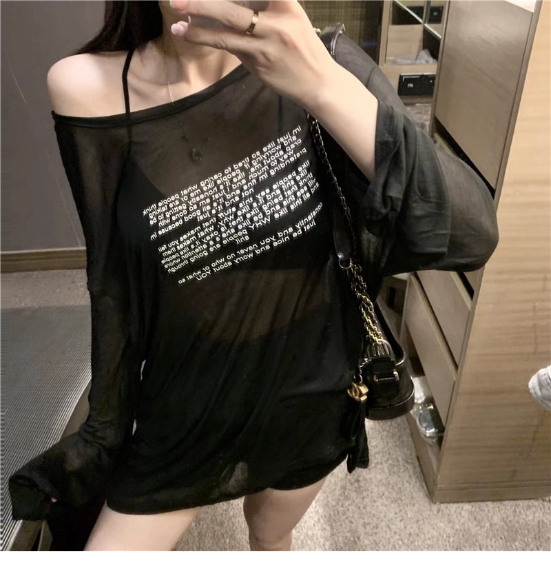 얇은 섹시한 원근감 선스크린 셔츠 최고 여성의 2024 년 여름 뉴 프론트 앤 백 웨어 느슨한 긴팔 티셔츠 블라우스스토어 가기