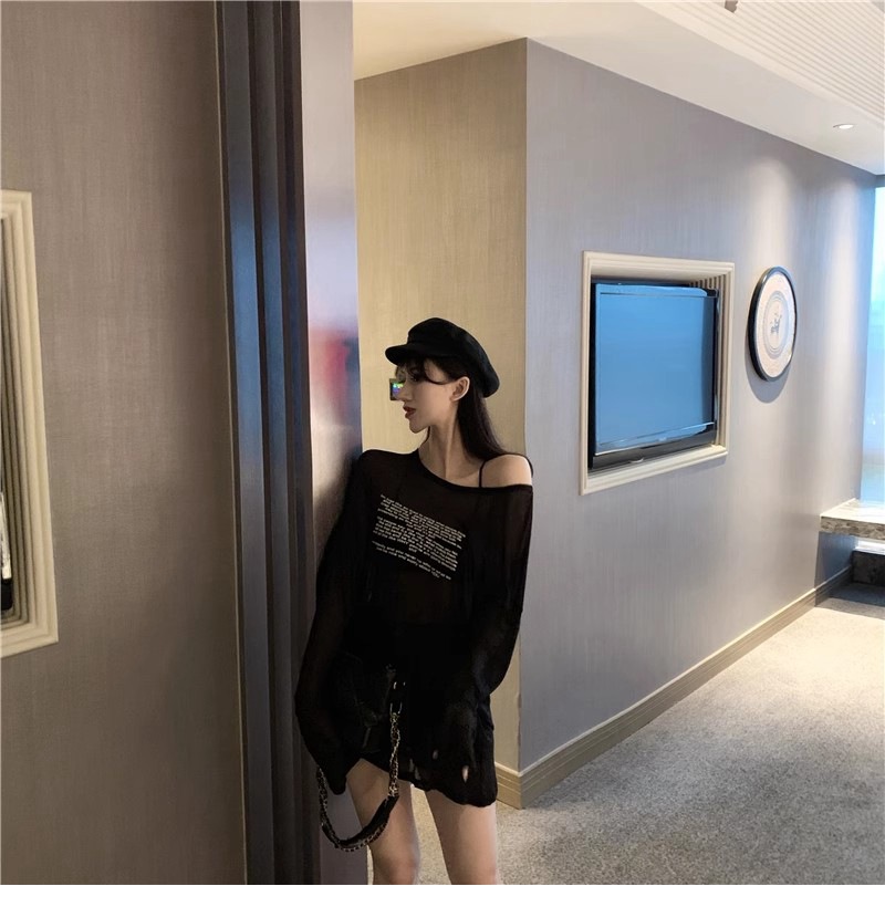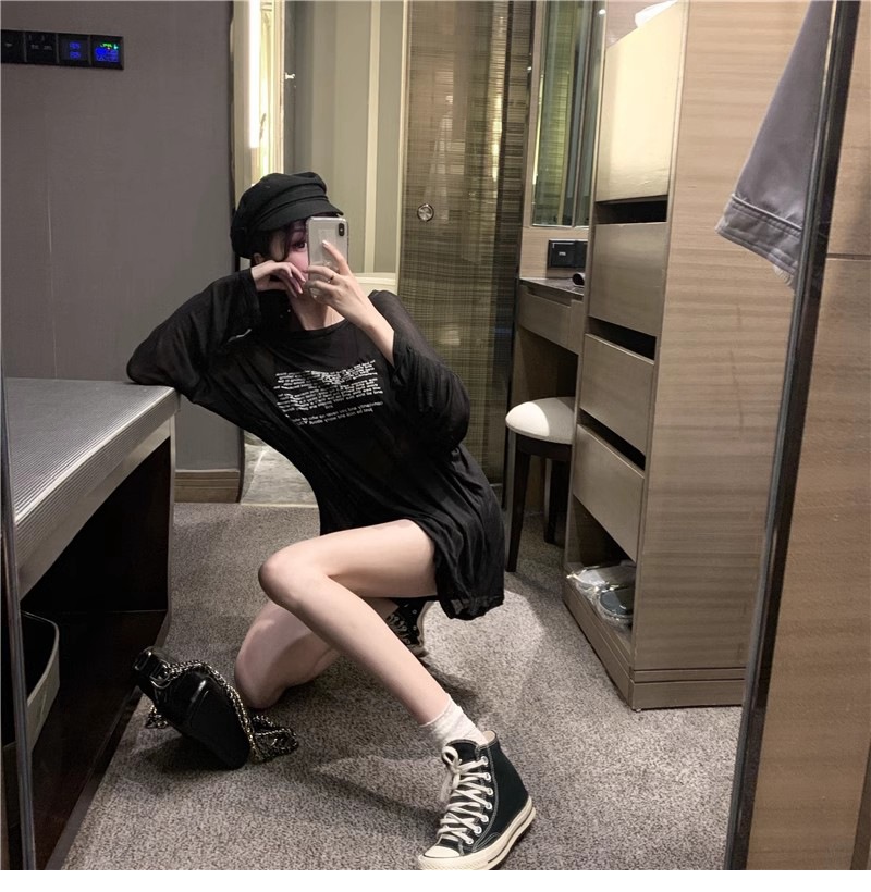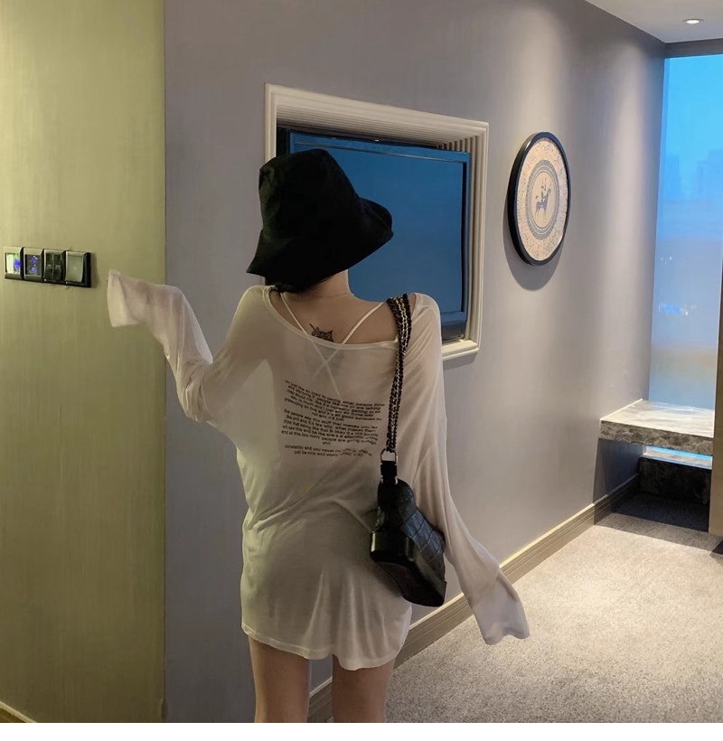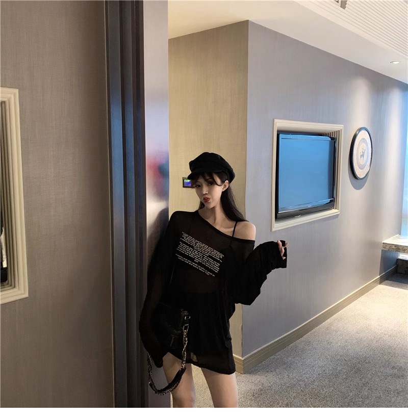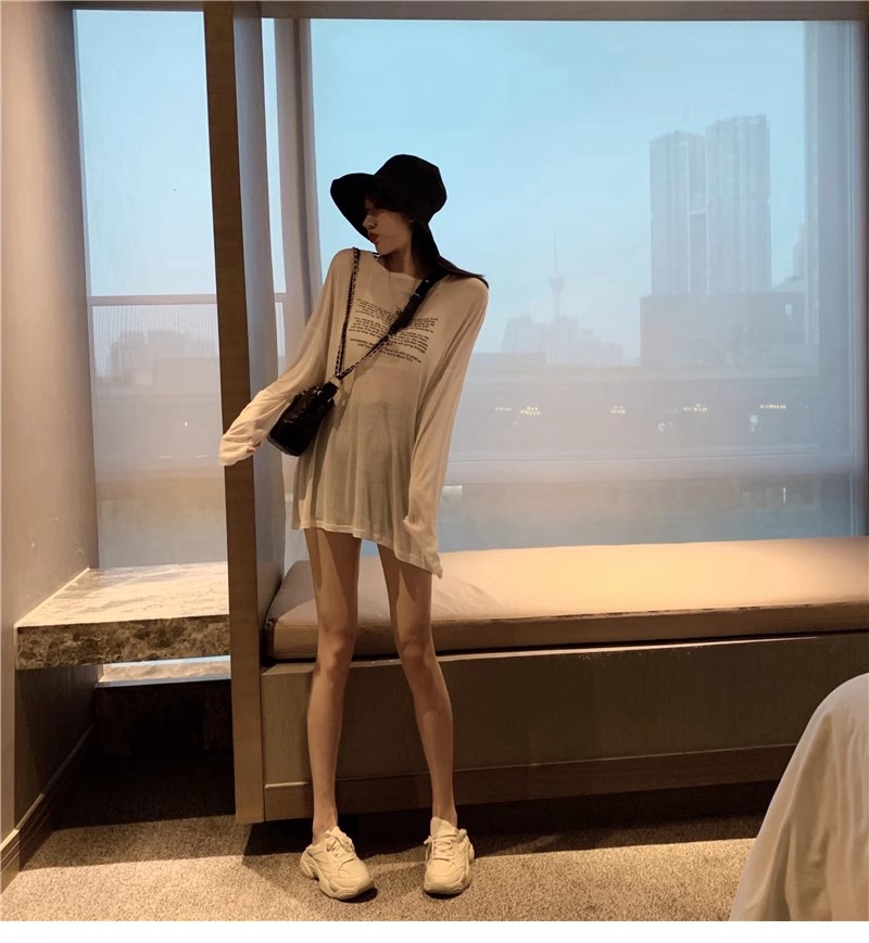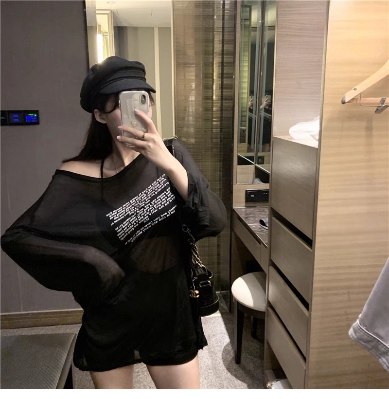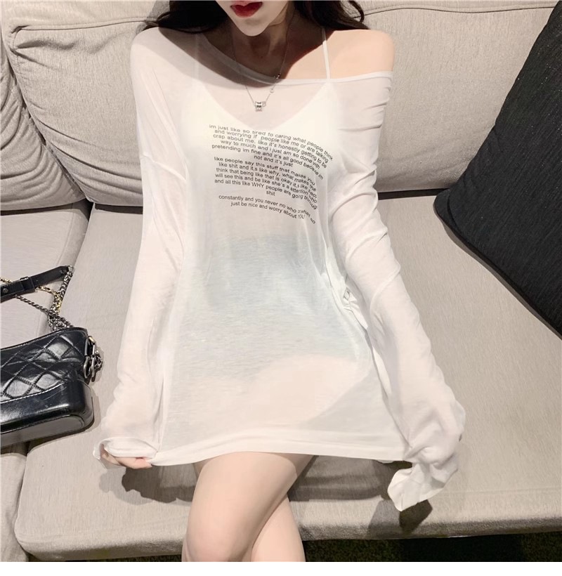 얇은 섹시한 원근감 선스크린 셔츠 최고 여성의 2024 년 여름 뉴 프론트 앤 백 웨어 느슨한 긴팔 티셔츠 블라우스스토어 가기