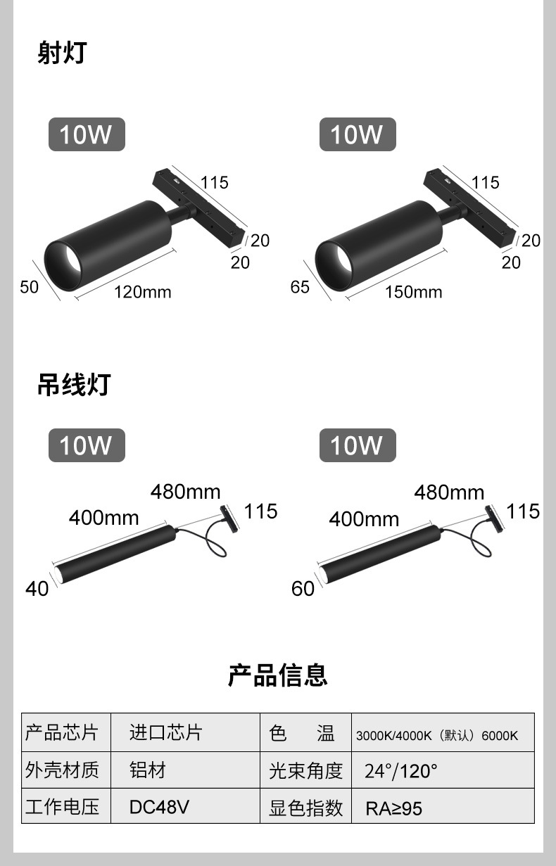 • 자기흡입 [가이드 레일 스포트라이트] 10W