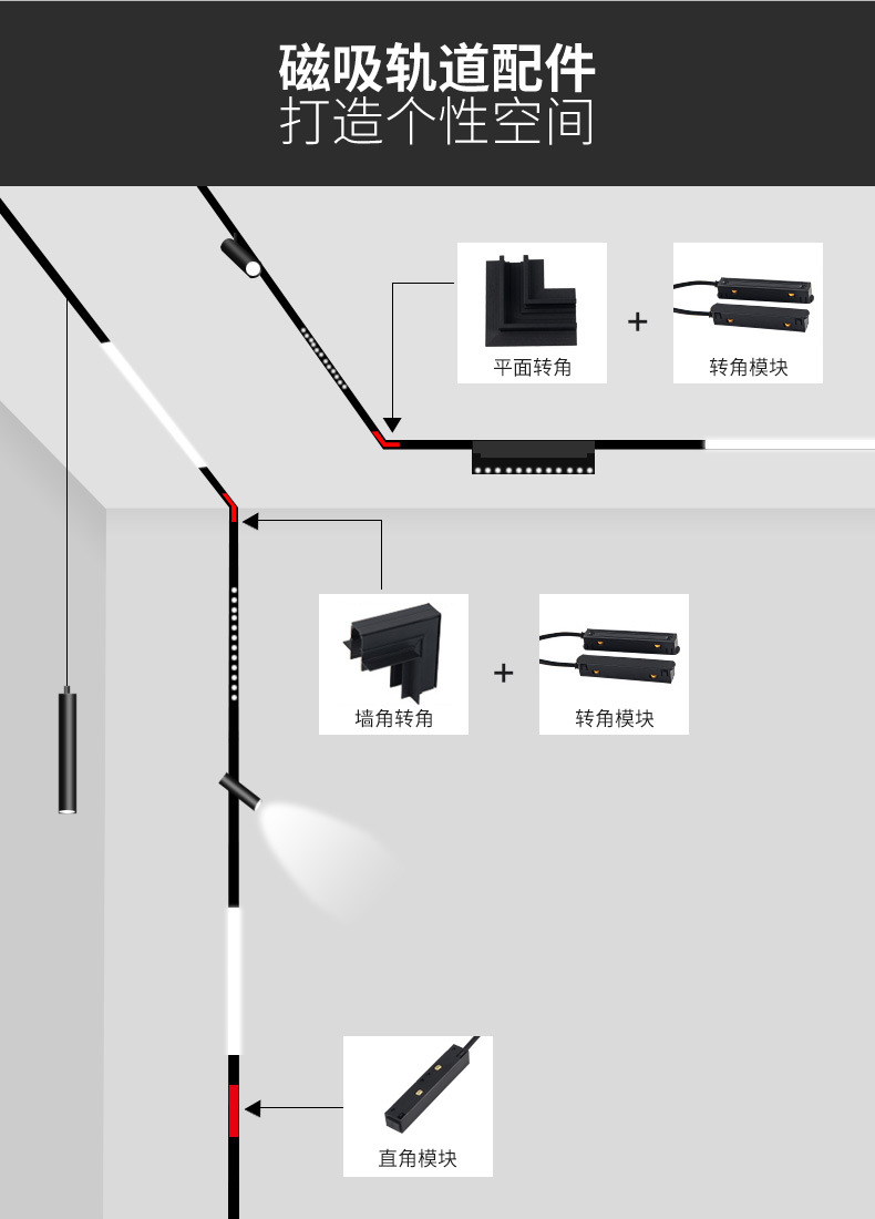 자석식 트랙 조명 매립형/노출형 무테 스포트라이트 가정용 무주조명 LED 라인 라이트 레일
