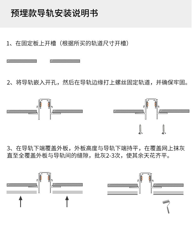 • 트랙 스트립 - [플라스틱 강철] 내장형 [두꺼워진 2.5mm]/미터, 원하는 만큼 길게 가져가세요