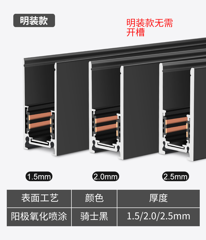 • 트랙 스트립 표면 장착형 모델 [두꺼워진 2.0mm]/미터, 원하는 만큼 길게 가져가세요