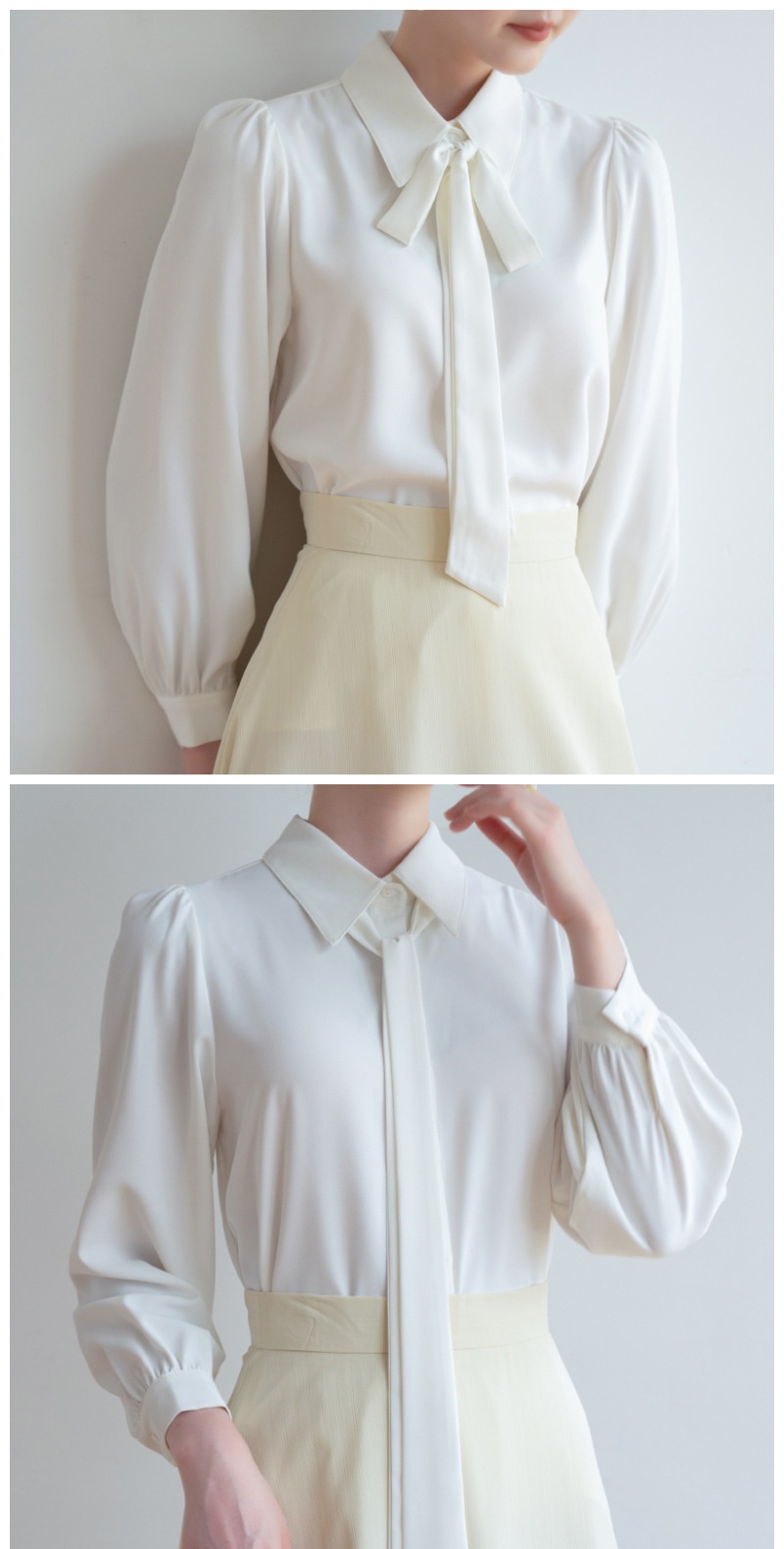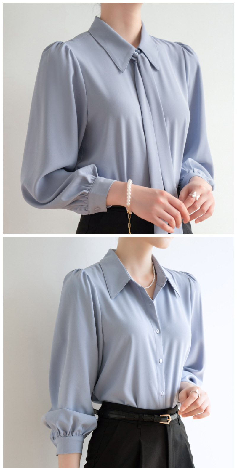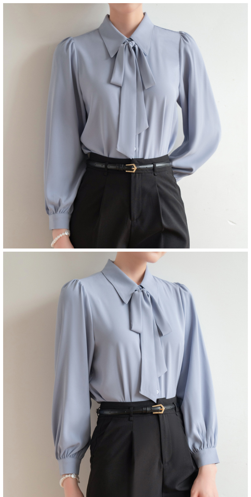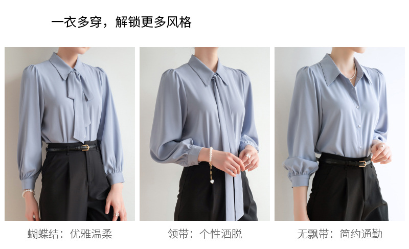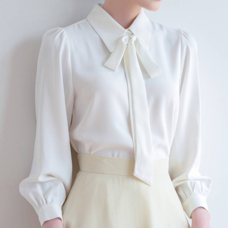 시폰 보우 셔츠 여성 봄, 가을 새로운 스타일 블루 전문 내부 공식 탑 화이트 인터뷰 셔츠스토어 가기