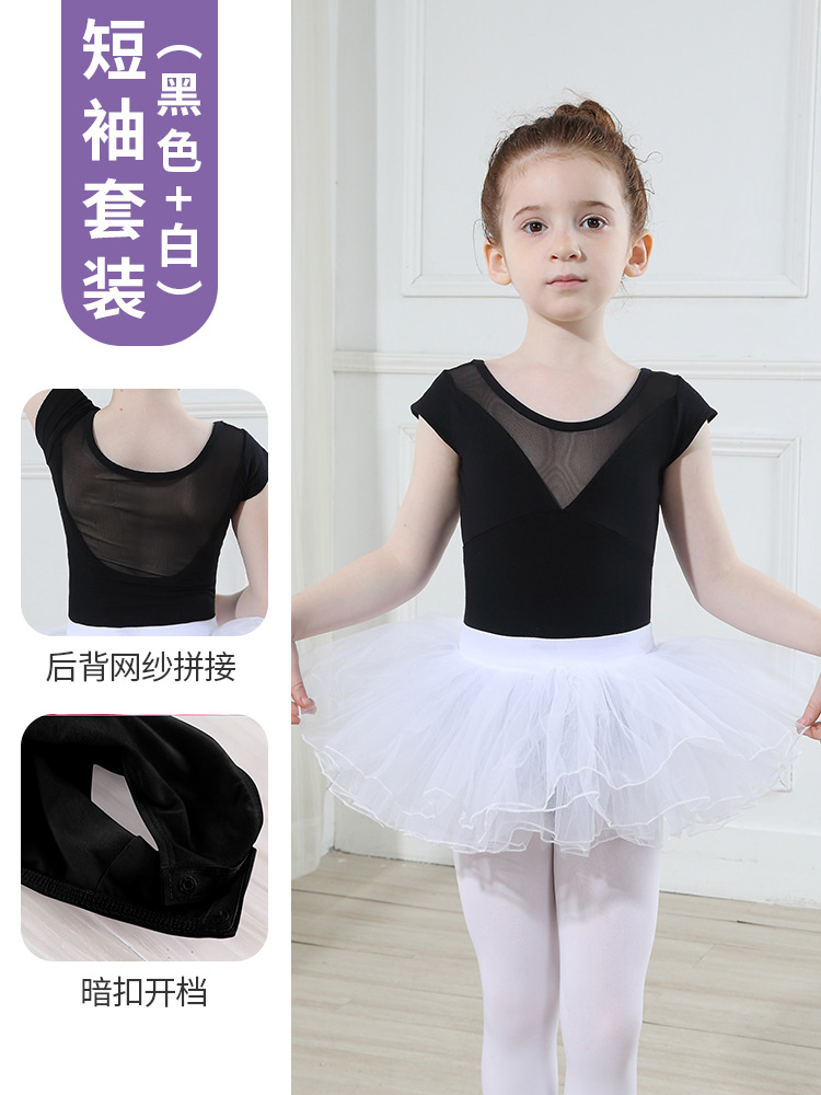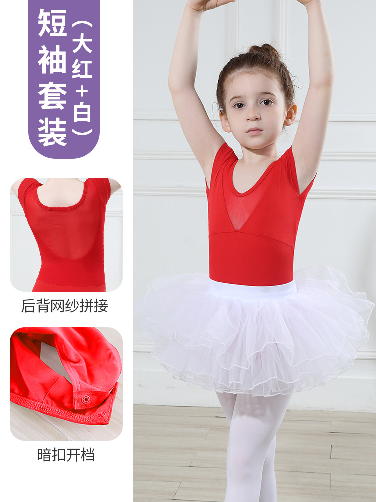 아동용 댄스복, 여아 연습복, 여아 반팔 바디수트, 발레 스커트, 중국 무용 댄스 여름복