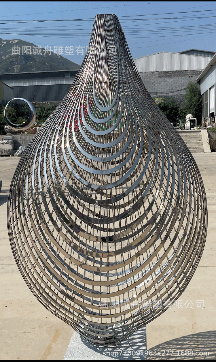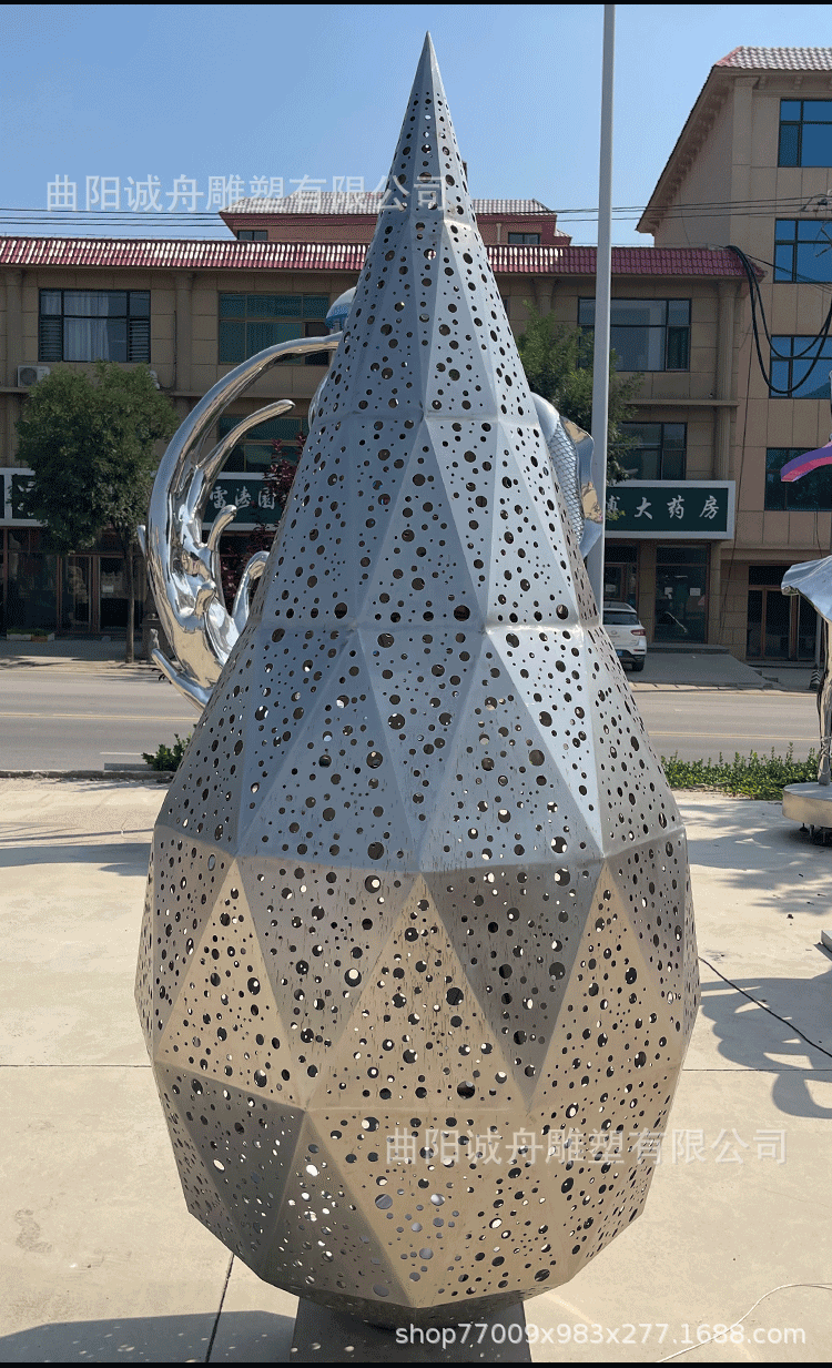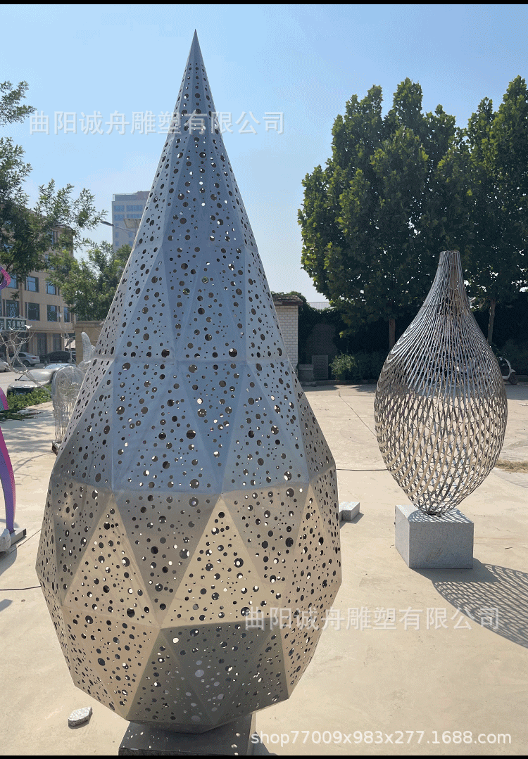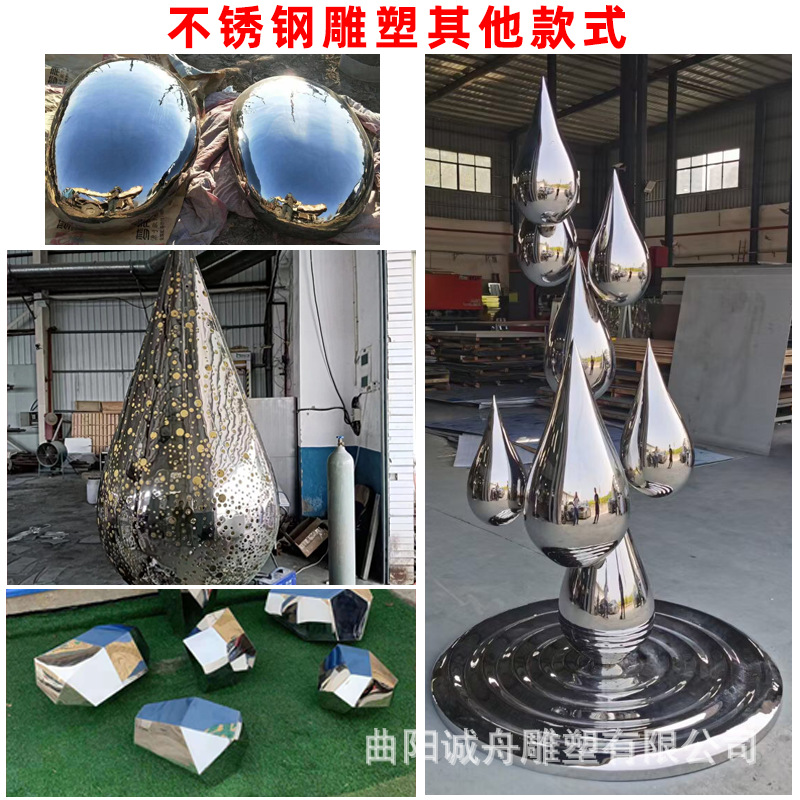 스테인레스 스틸 거울 조각 특수 모양의 기하학적 물방울 블록 표면 돌 야외 공원 녹색 공간 판매 부서 물 시스템 장식품스토어 가기