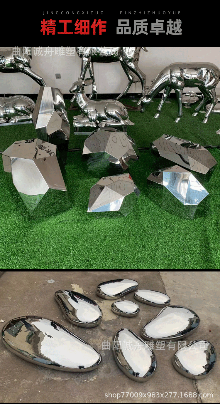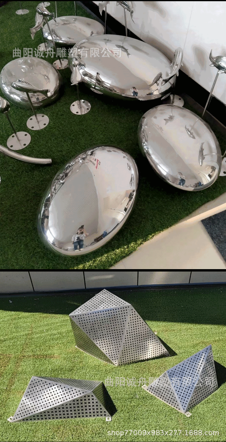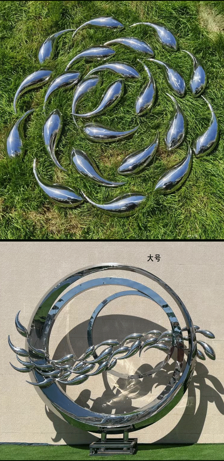 스테인레스 스틸 거울 조각 특수 모양의 기하학적 물방울 블록 표면 돌 야외 공원 녹색 공간 판매 부서 물 시스템 장식품스토어 가기