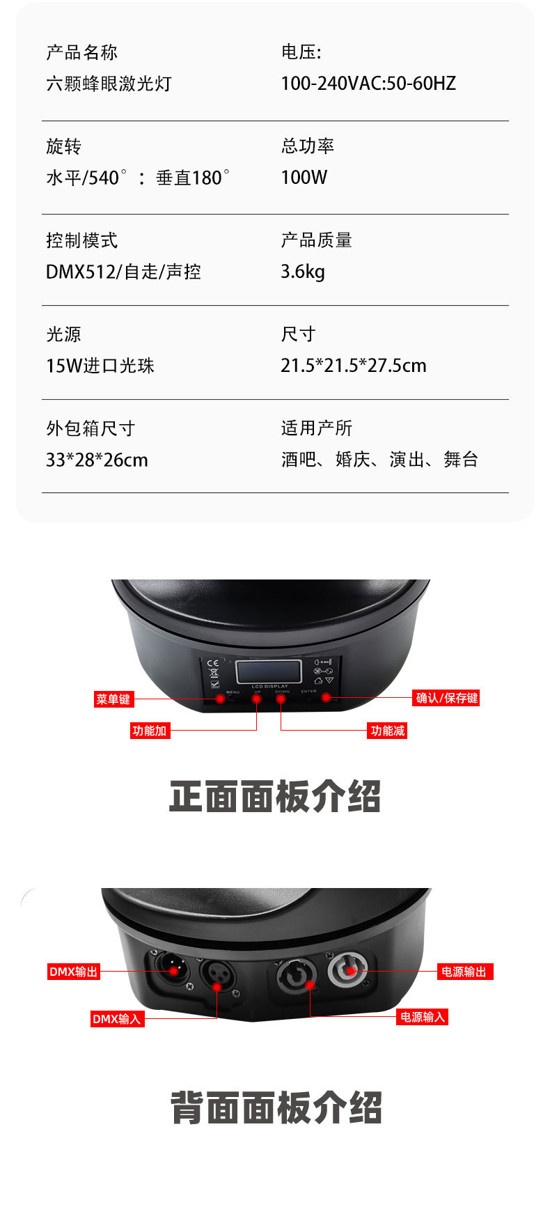 무대 조명 6 개의 꿀벌 레이저 조명 바 빔 떨림 헤드 라이트 다채로운 회전 조명 KTV 분위기 조명 디스코 조명