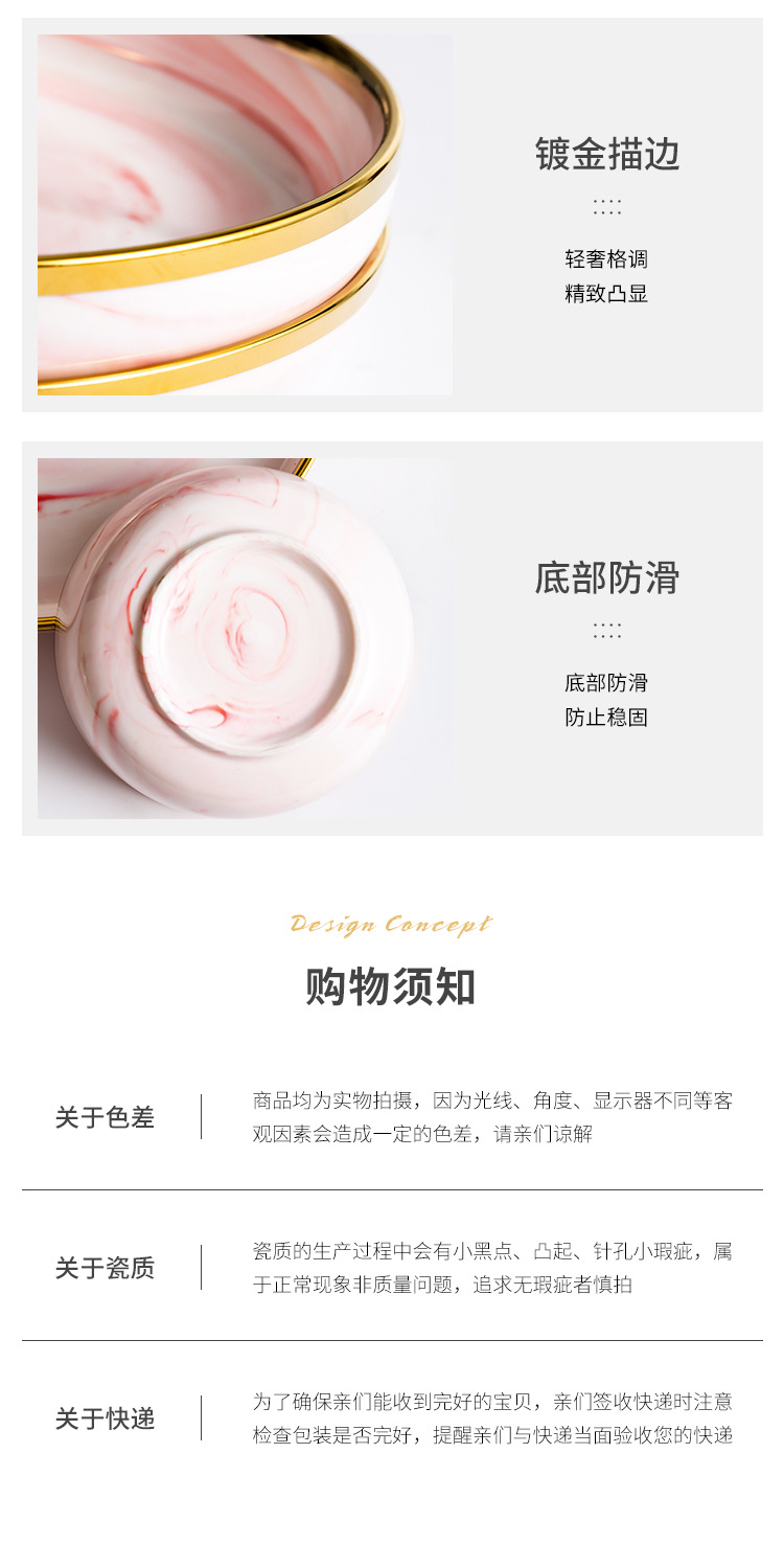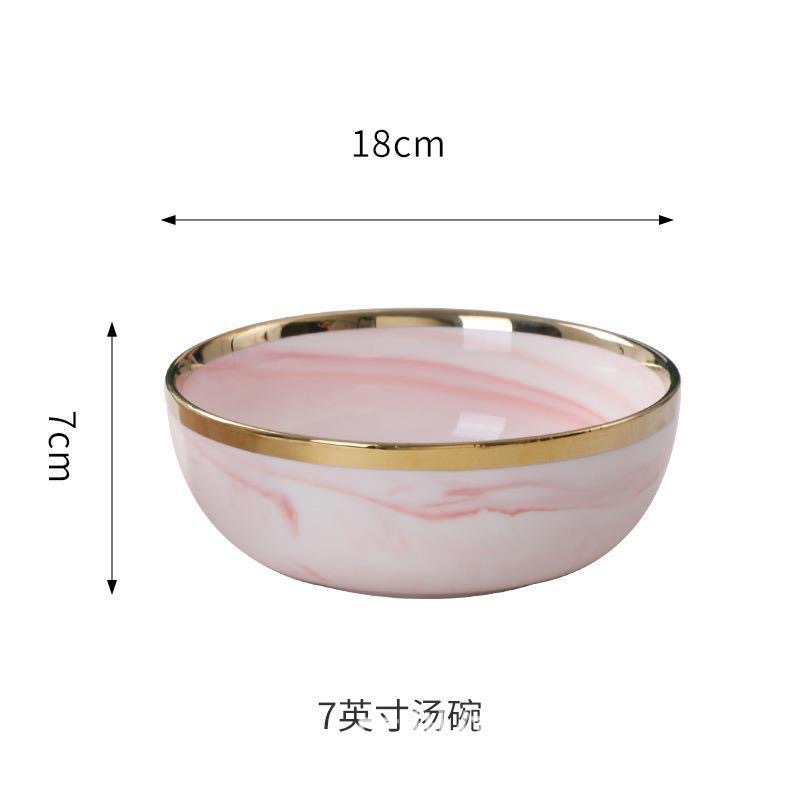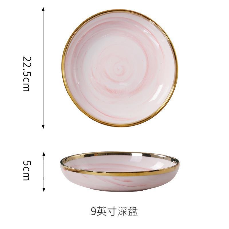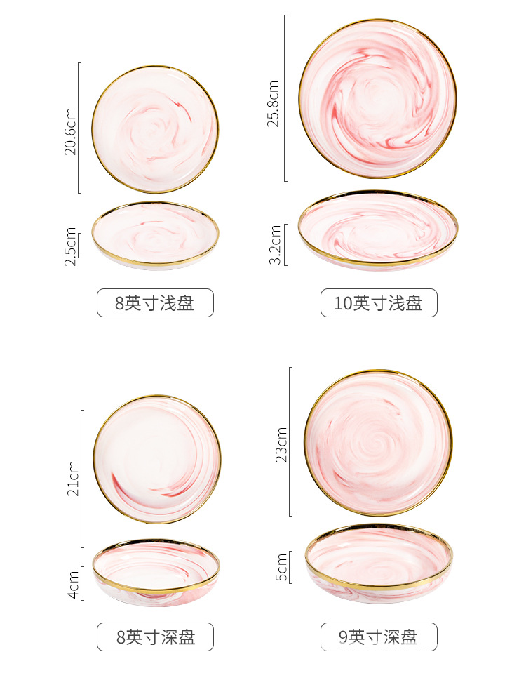 북유럽 스타일 국경 간 대리석 패턴 핑크 식기 가정용 세라믹 접시 스테이크 접시 수프 그릇 서양 음식 접시 선물 상자스토어 가기