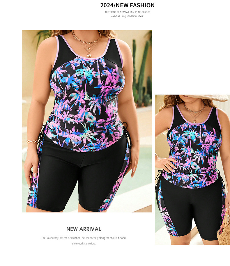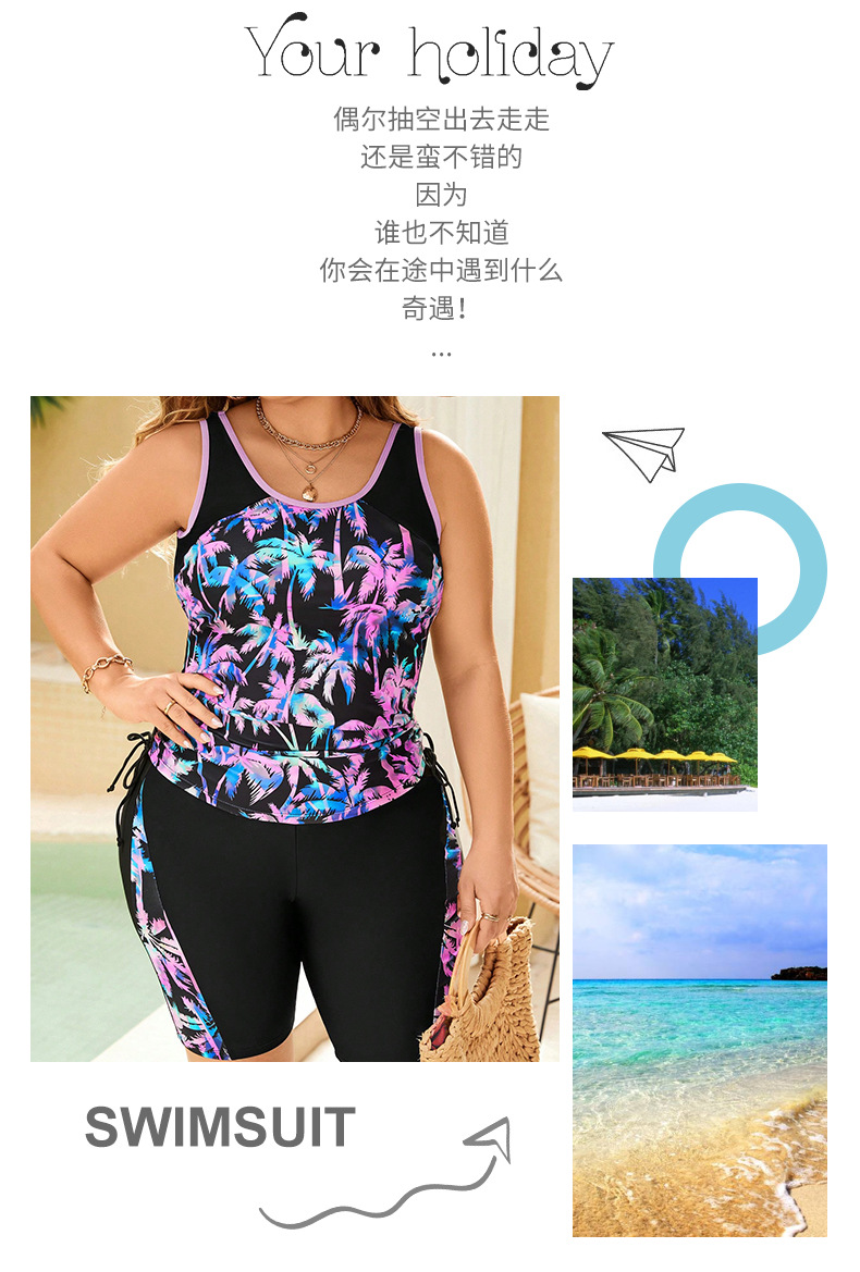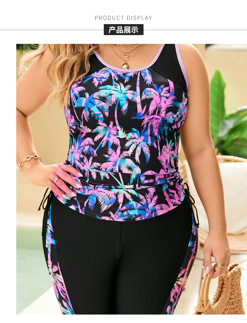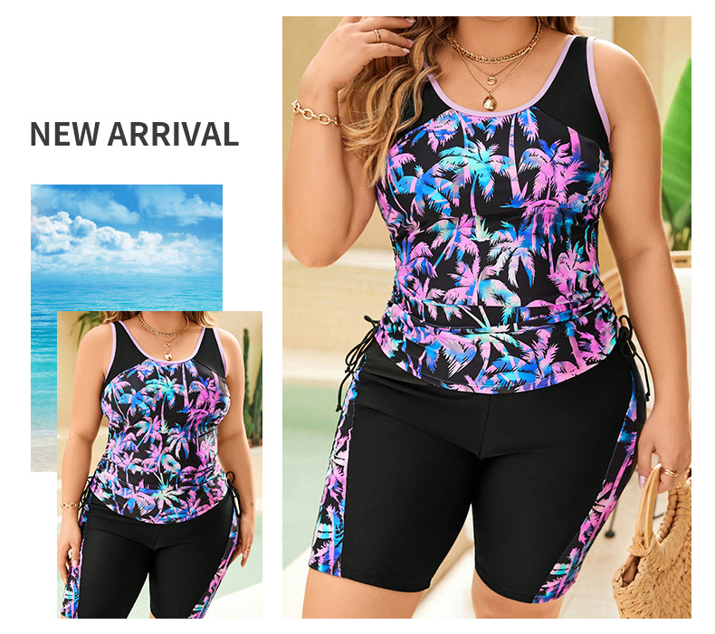 유럽과 미국의 플러스 사이즈 수영복 여성 아마존 국경 분할 보트 슬림 핏 보수적 인 프린트 비치 야외 비키니