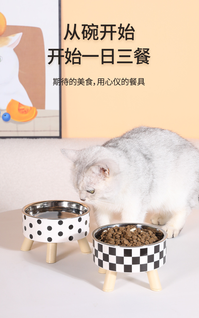 국경 간 고양이 그릇 안티 노크 네 다리 애완 동물 그릇 스테인레스 스틸 개 분지 별도의 마시는 그릇 애완 동물 피더 도매