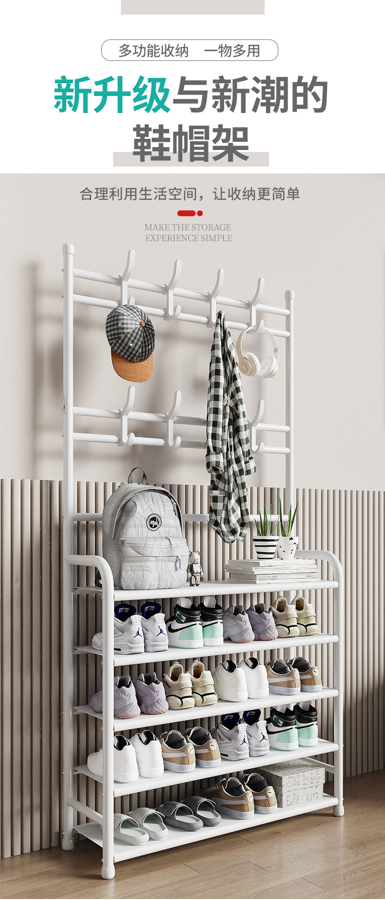간단한 코트 랙 대담한 바닥 침실 옷 랙 코트 랙 보관 신발 랙 기숙사 문 배치
