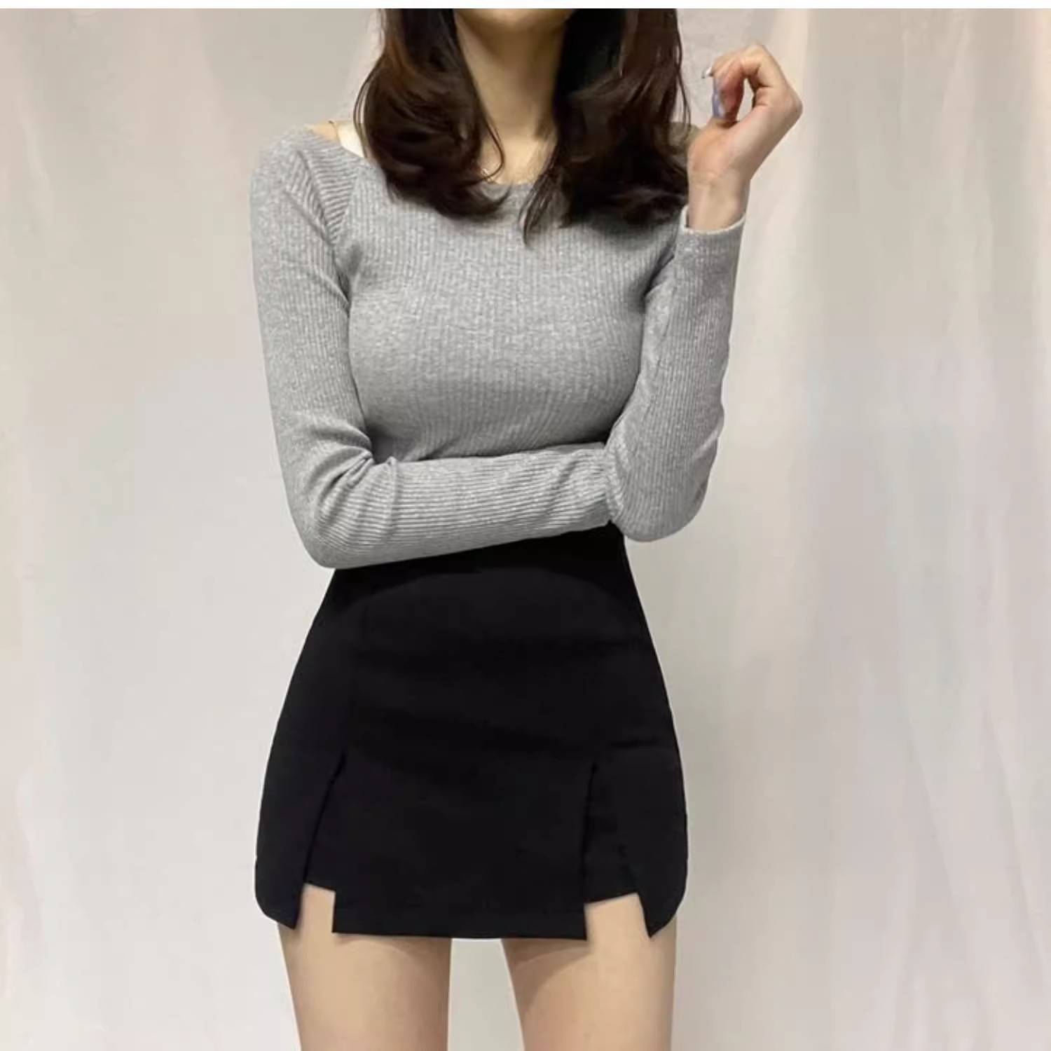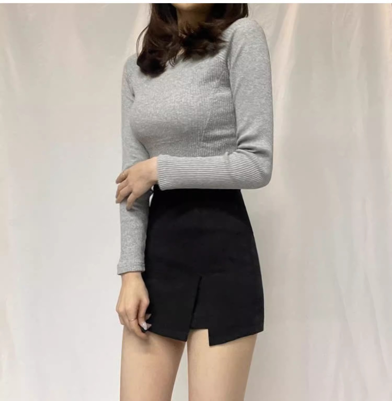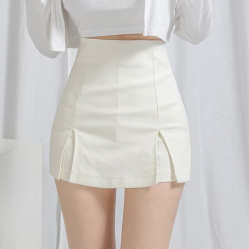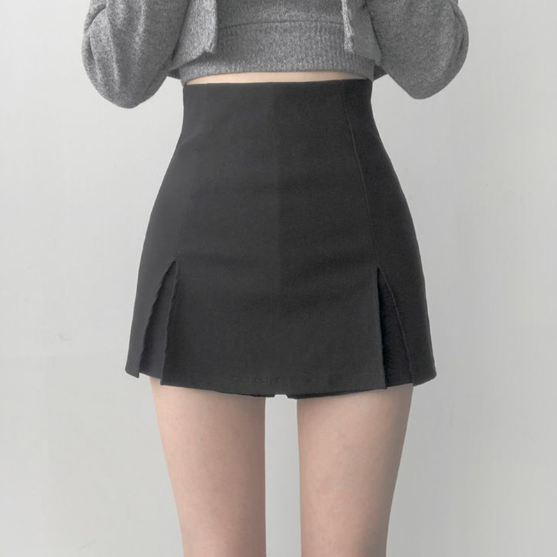 2025 여름 핫걸들을 위한 블랙 하프 길이 스커트, 슬리밍 슬릿, 엉덩이를 덮는 작은 신축성 있는 하이웨이스트 반바지 스커트스토어 가기