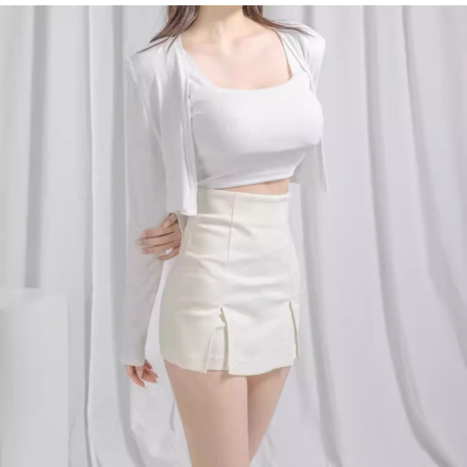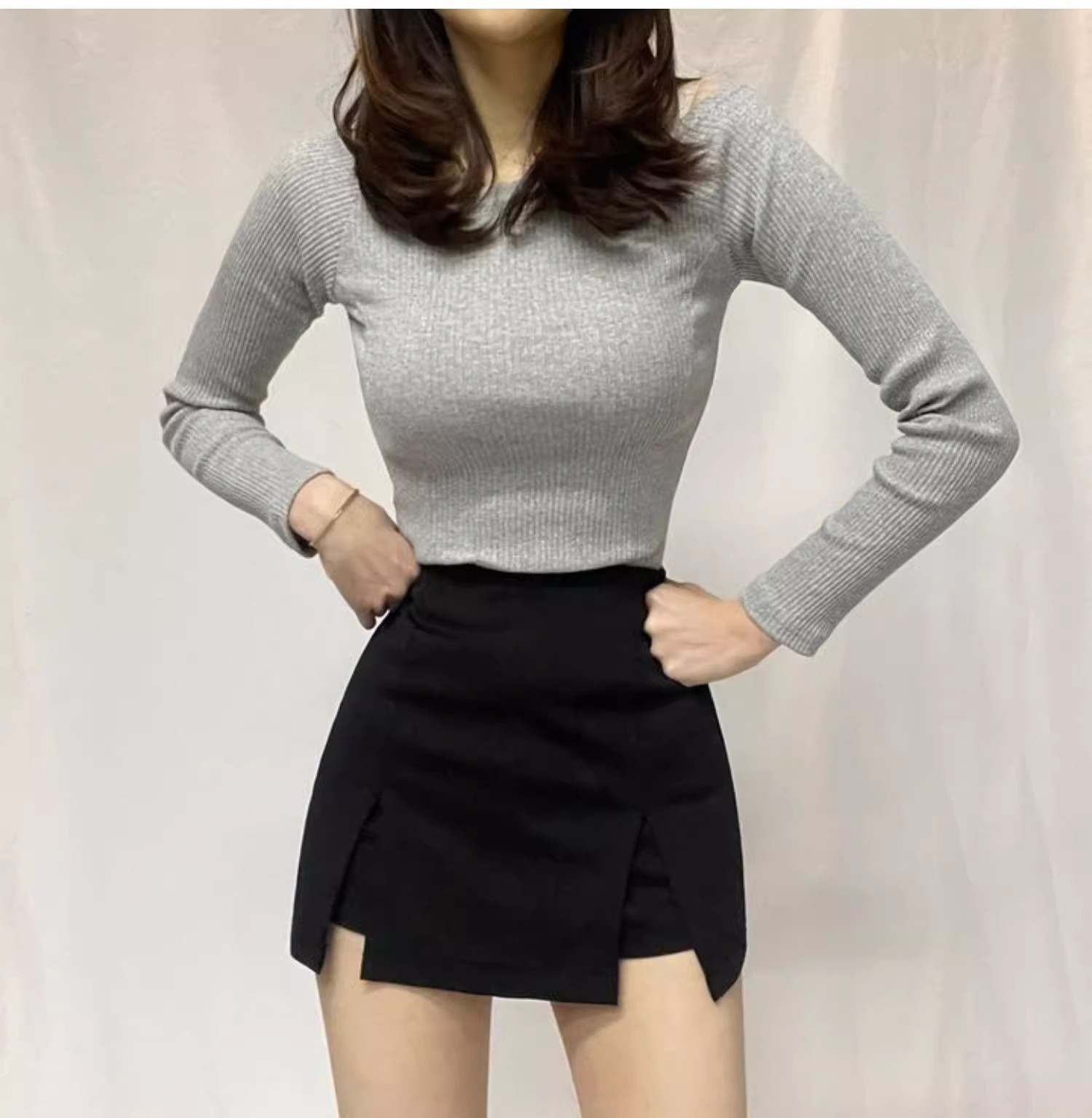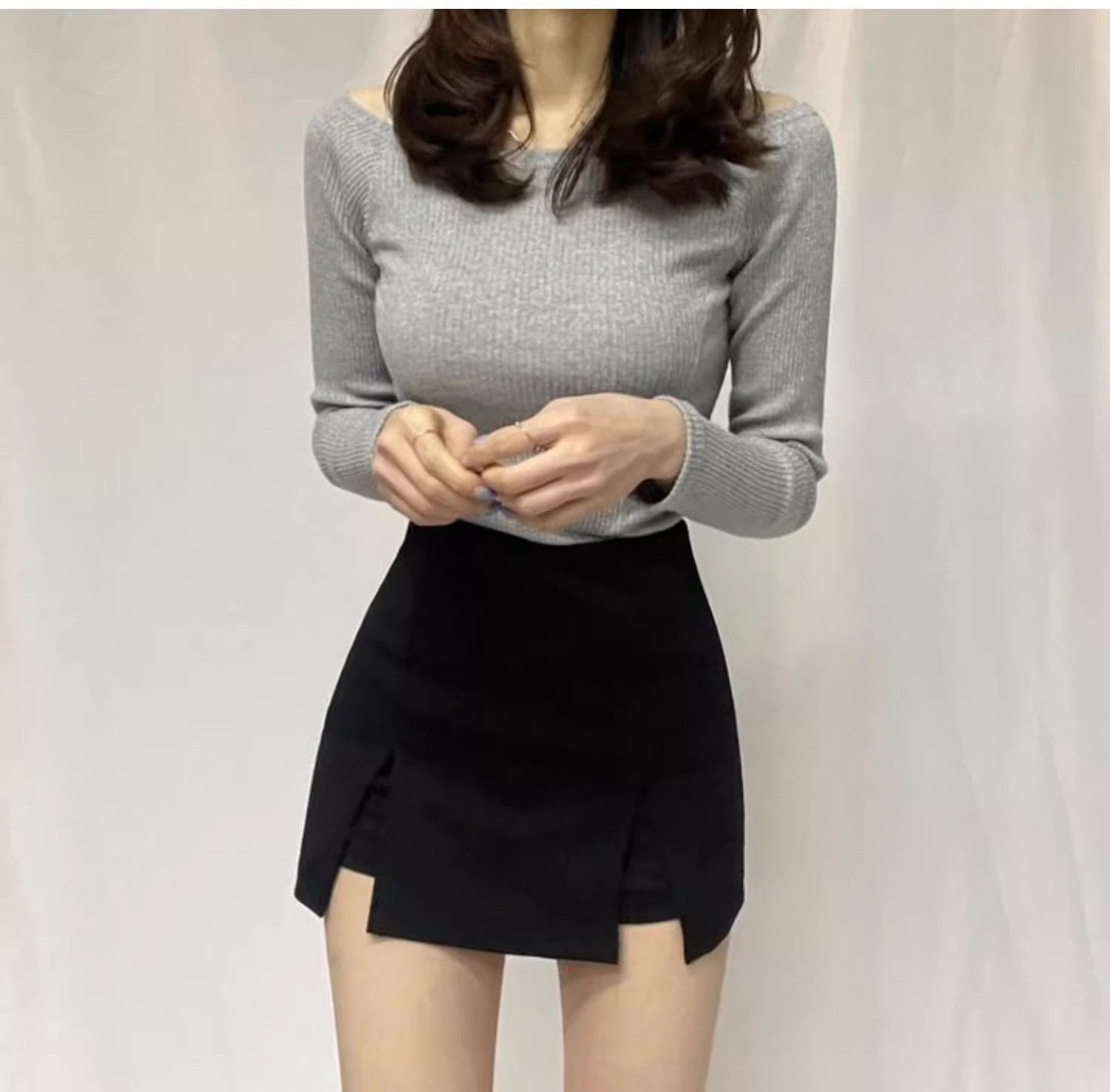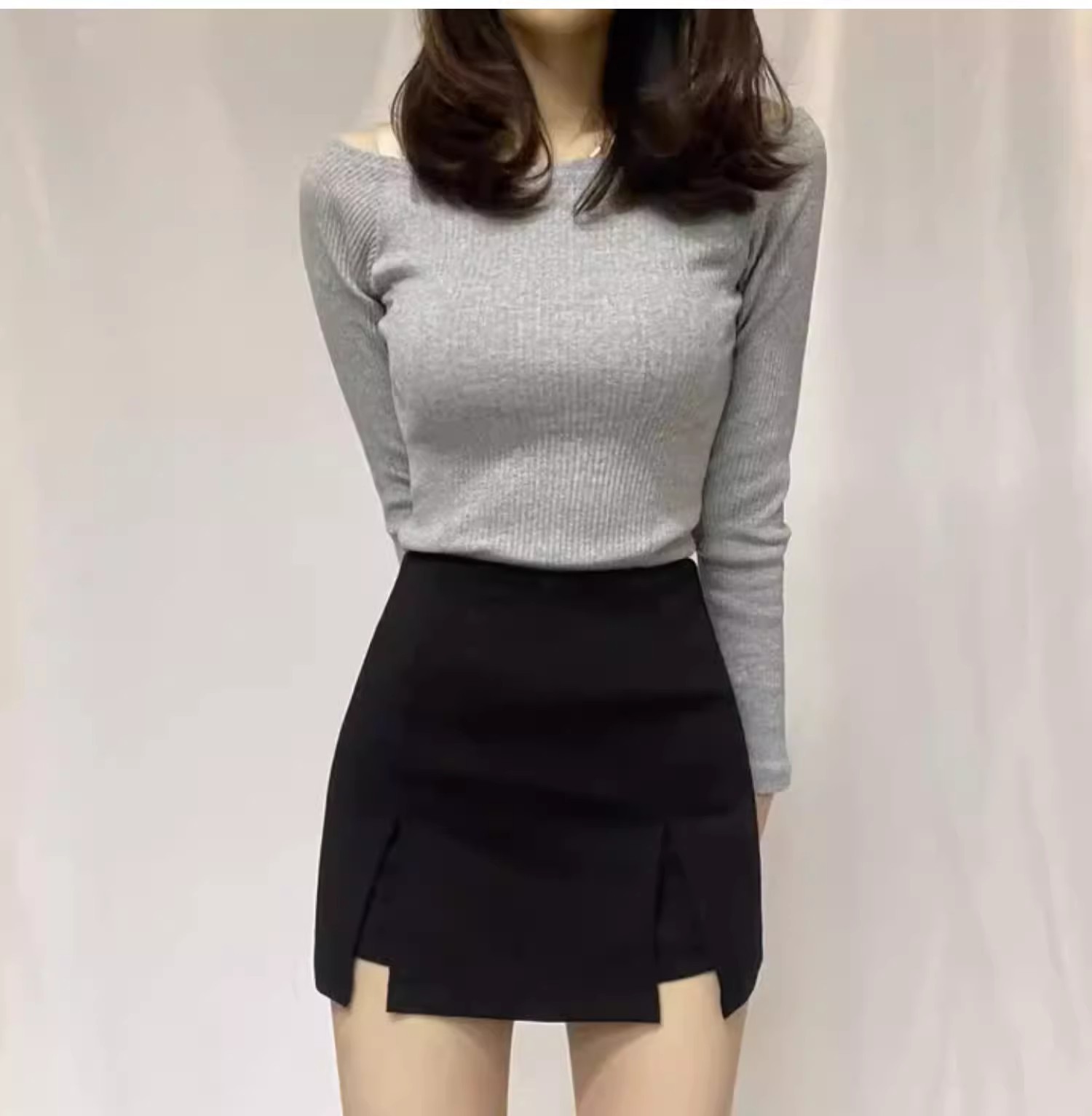 2025 여름 핫걸들을 위한 블랙 하프 길이 스커트, 슬리밍 슬릿, 엉덩이를 덮는 작은 신축성 있는 하이웨이스트 반바지 스커트스토어 가기
