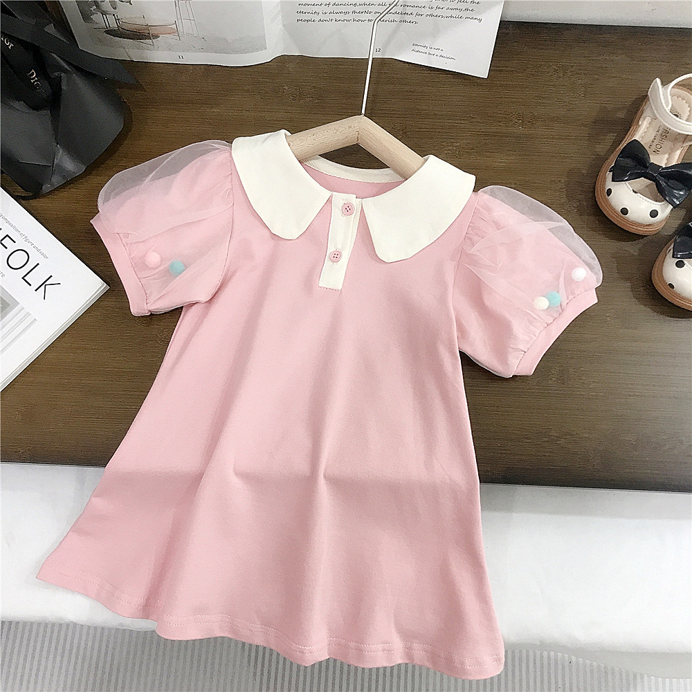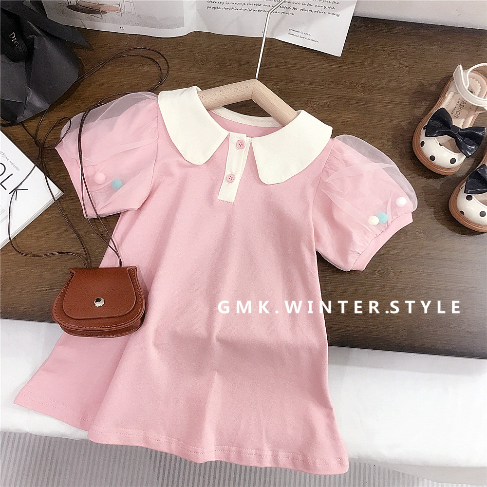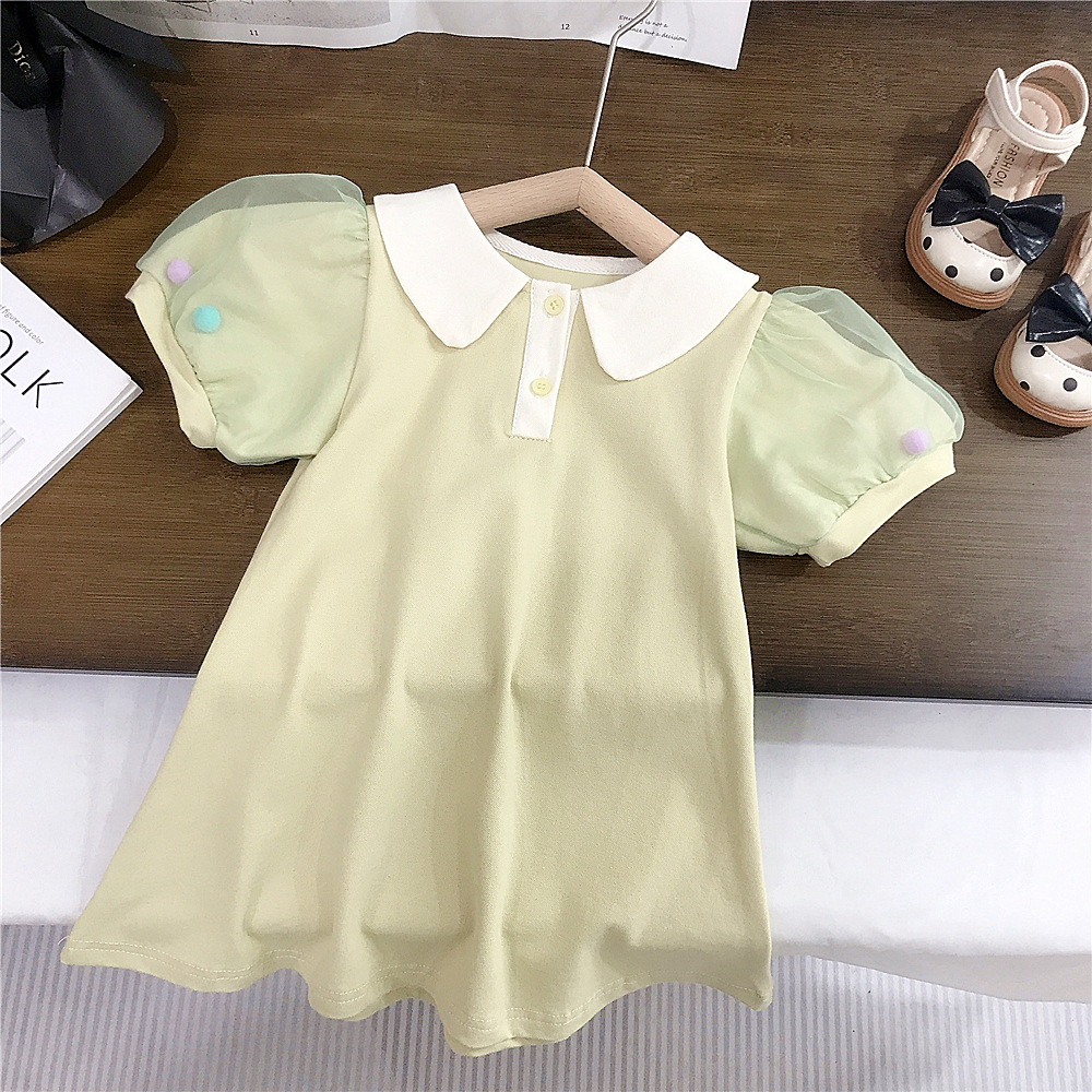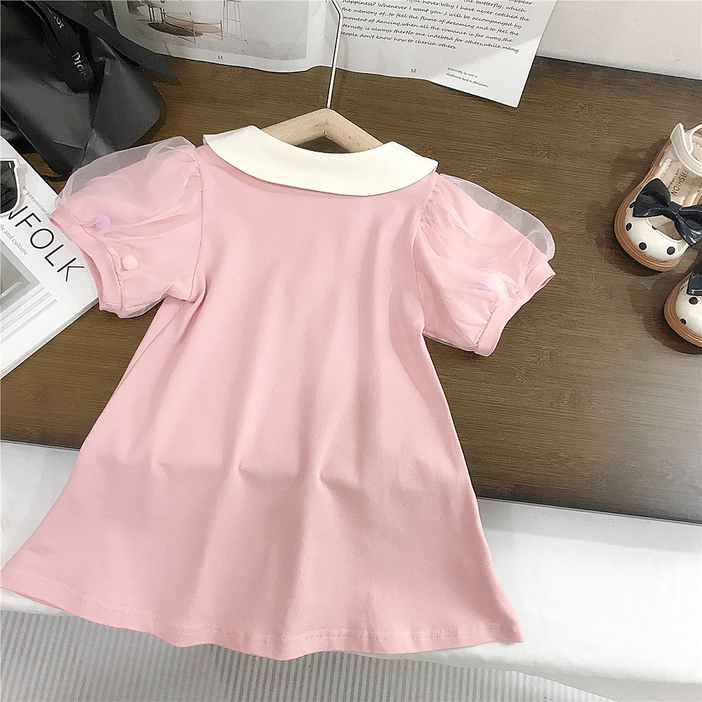 여름 새로운 스타일 메쉬 소매 인형 칼라 스커트 여성 아기 귀여운 서양식 원피스 A-라인 스커트 소녀 캐주얼 아동복 대외 무역스토어 가기