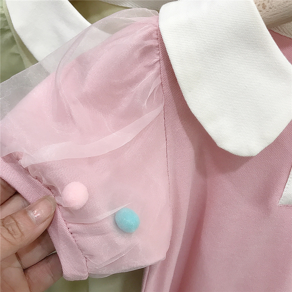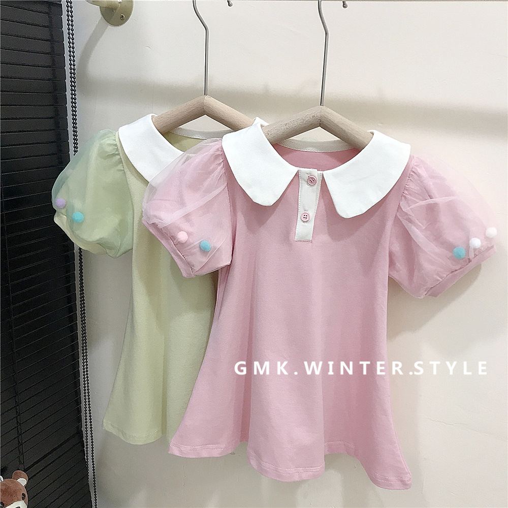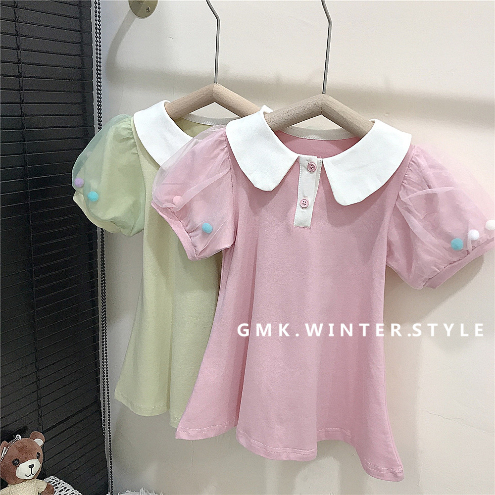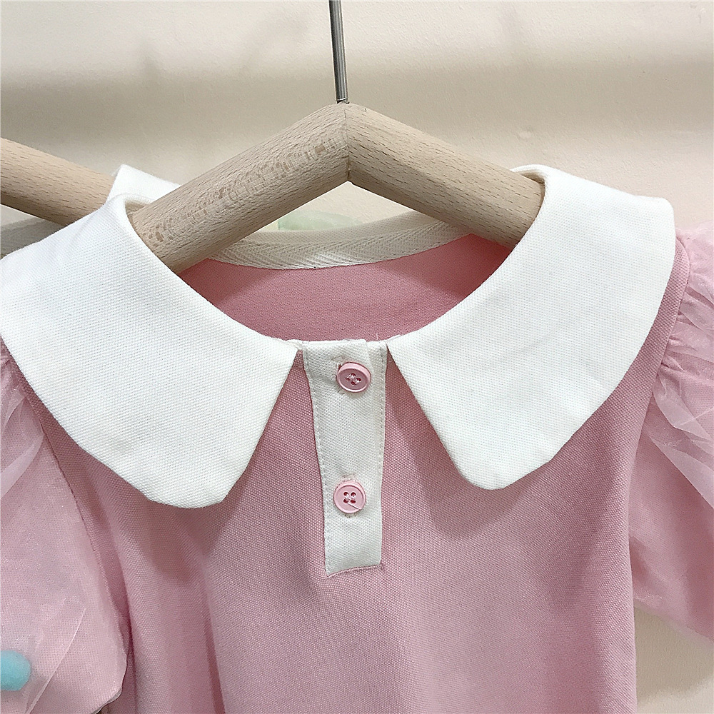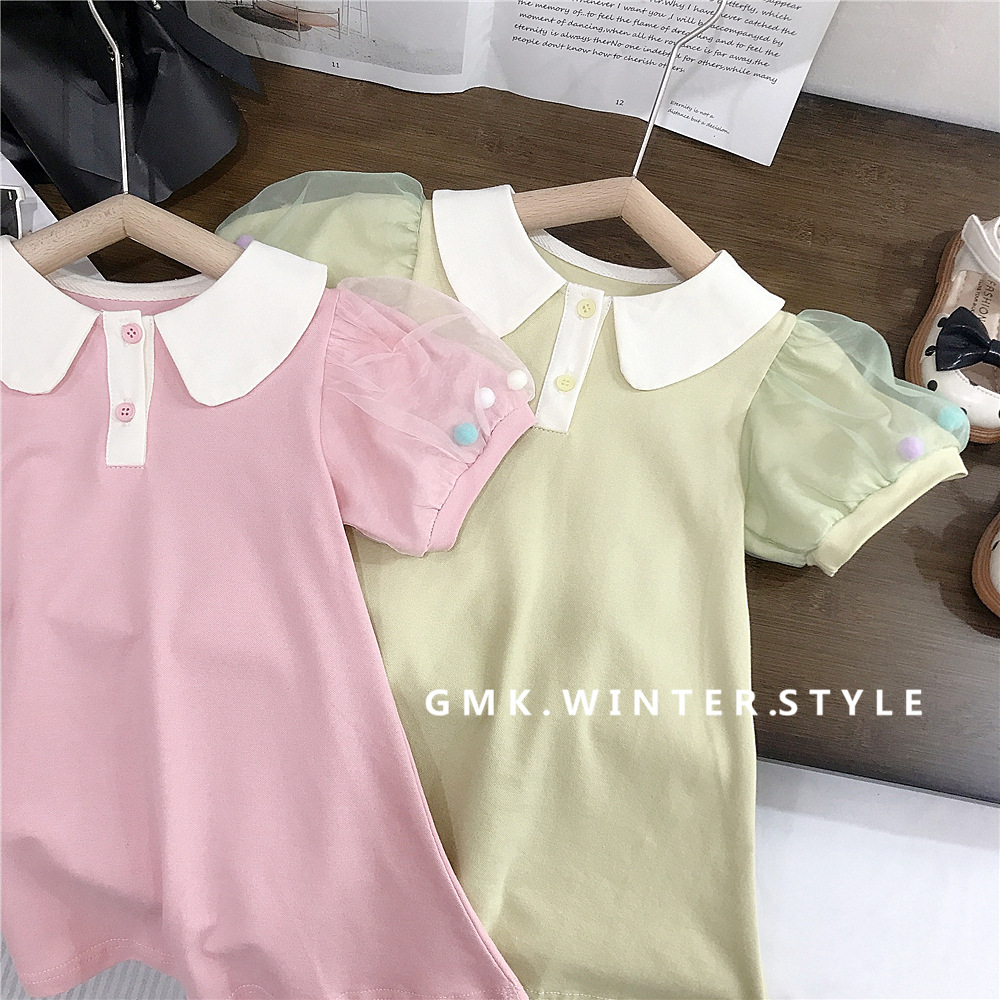 여름 새로운 스타일 메쉬 소매 인형 칼라 스커트 여성 아기 귀여운 서양식 원피스 A-라인 스커트 소녀 캐주얼 아동복 대외 무역스토어 가기
