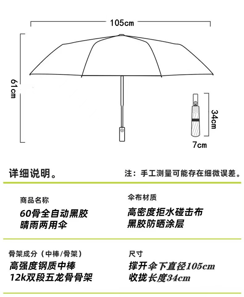 • 60 뼈 (12 뼈 3 2) 자동 비닐 우산 [블랙]]