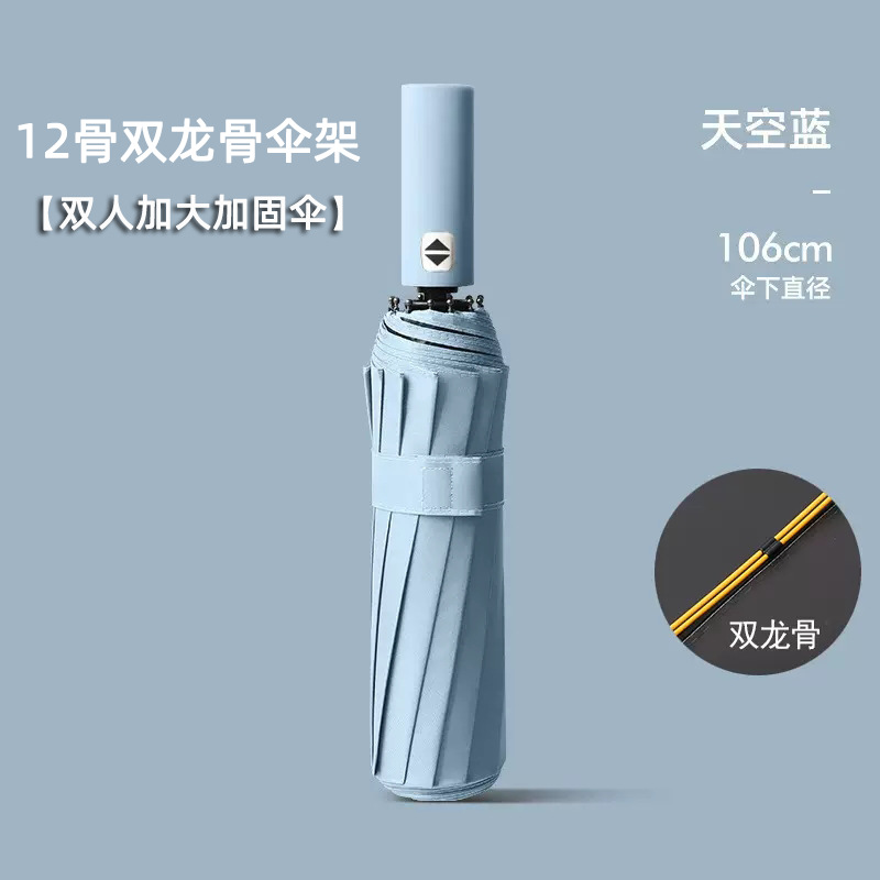 • 24 뼈 (12 뼈 * 2) 자동 비닐 우산 [하늘색]]