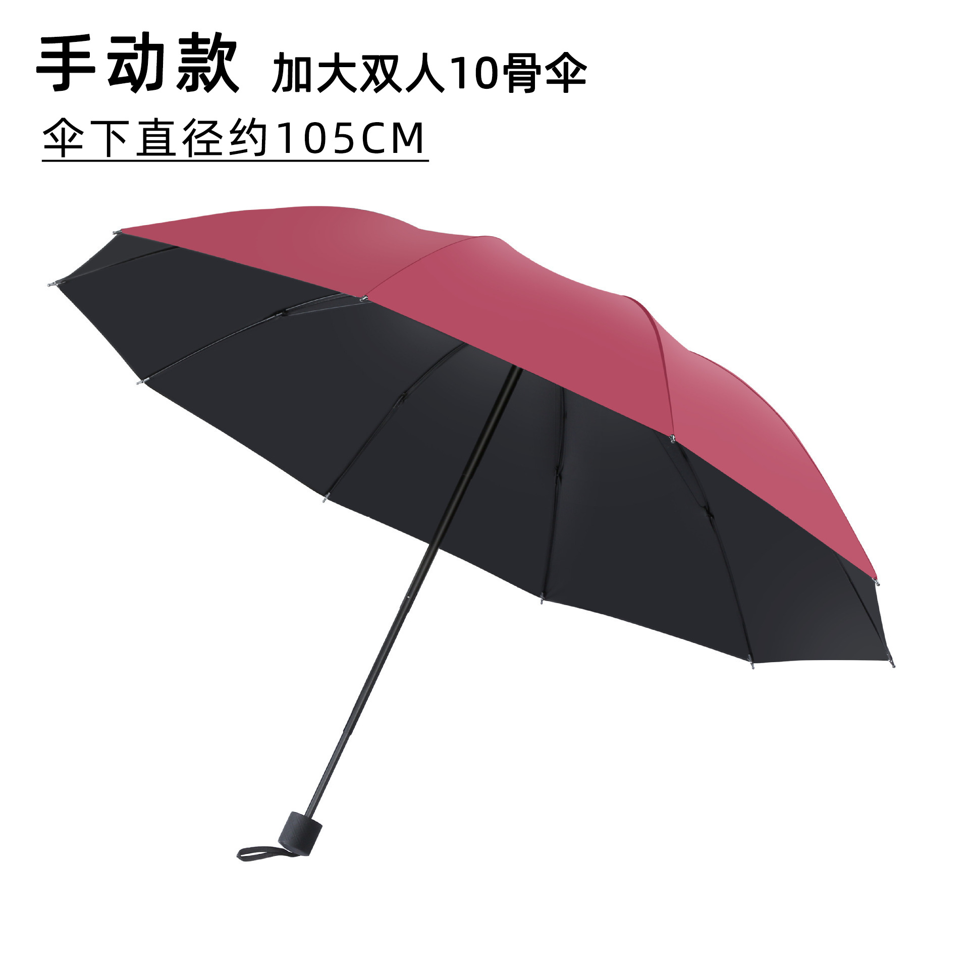 • 10 뼈 매뉴얼 블랙 껌 우산 [버건디]
