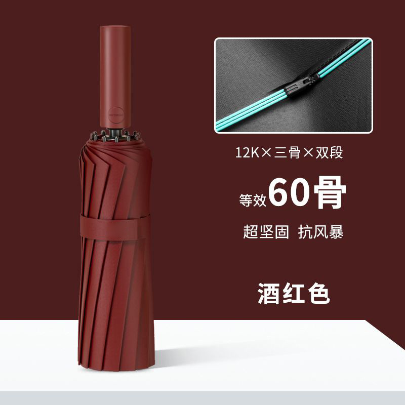 • 60-뼈 (12-뼈 32) 완전 자동 비닐 우산 [버건디]]