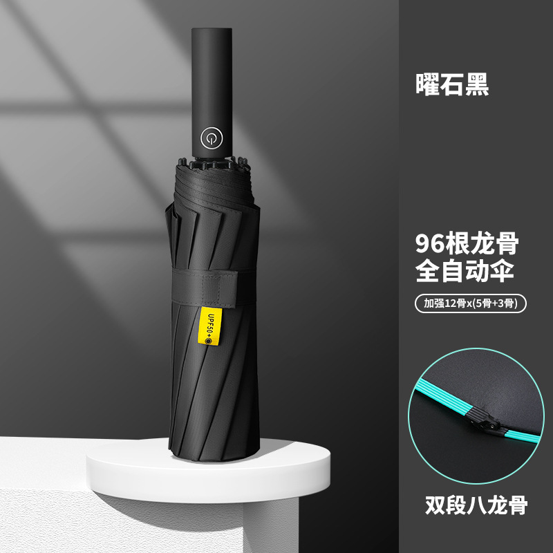 • 24 뼈 (12 뼈 * 2) 자동 검은 고무 우산 [말차]]