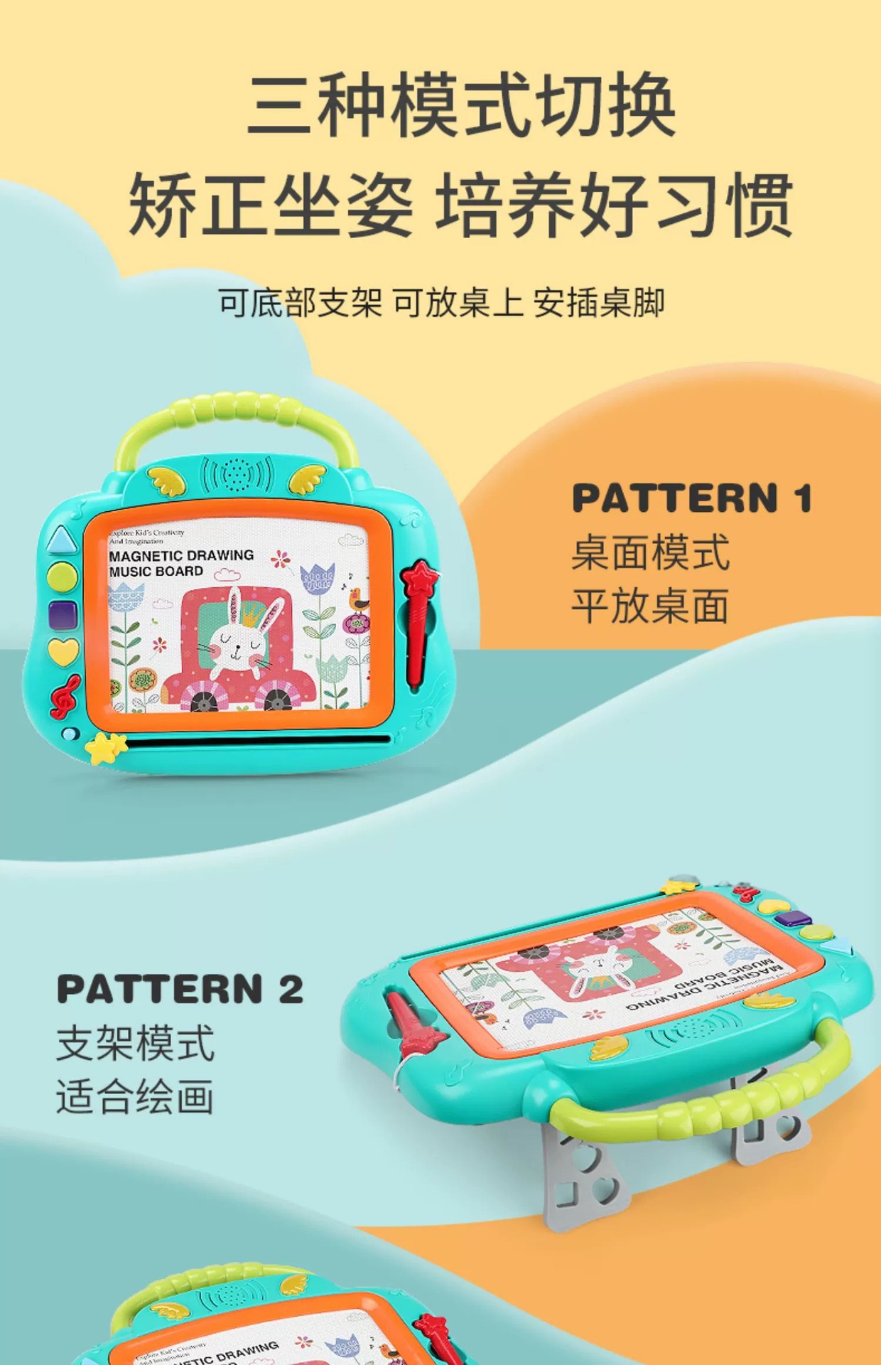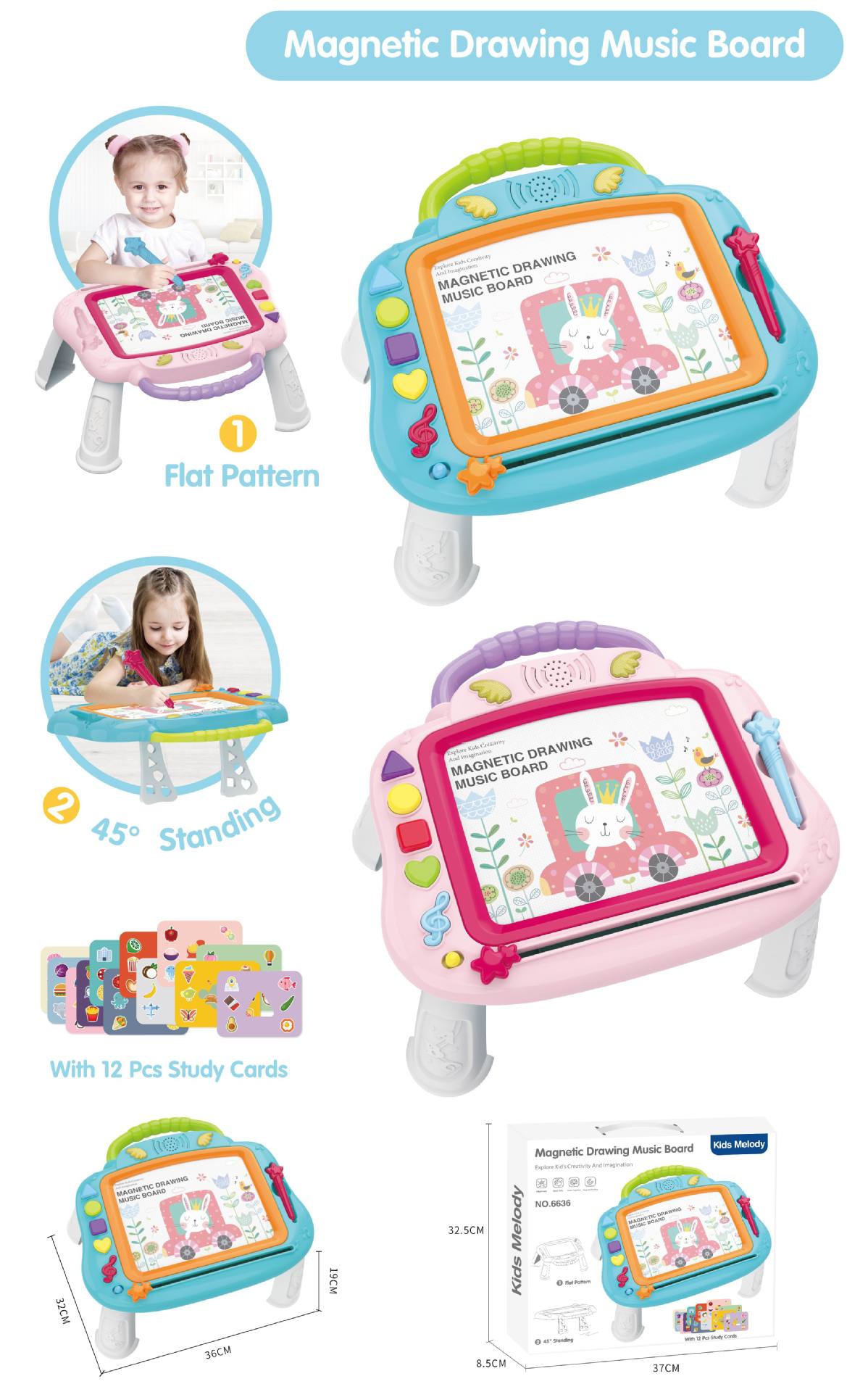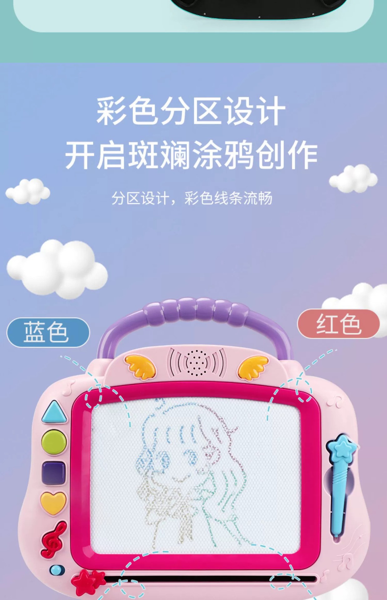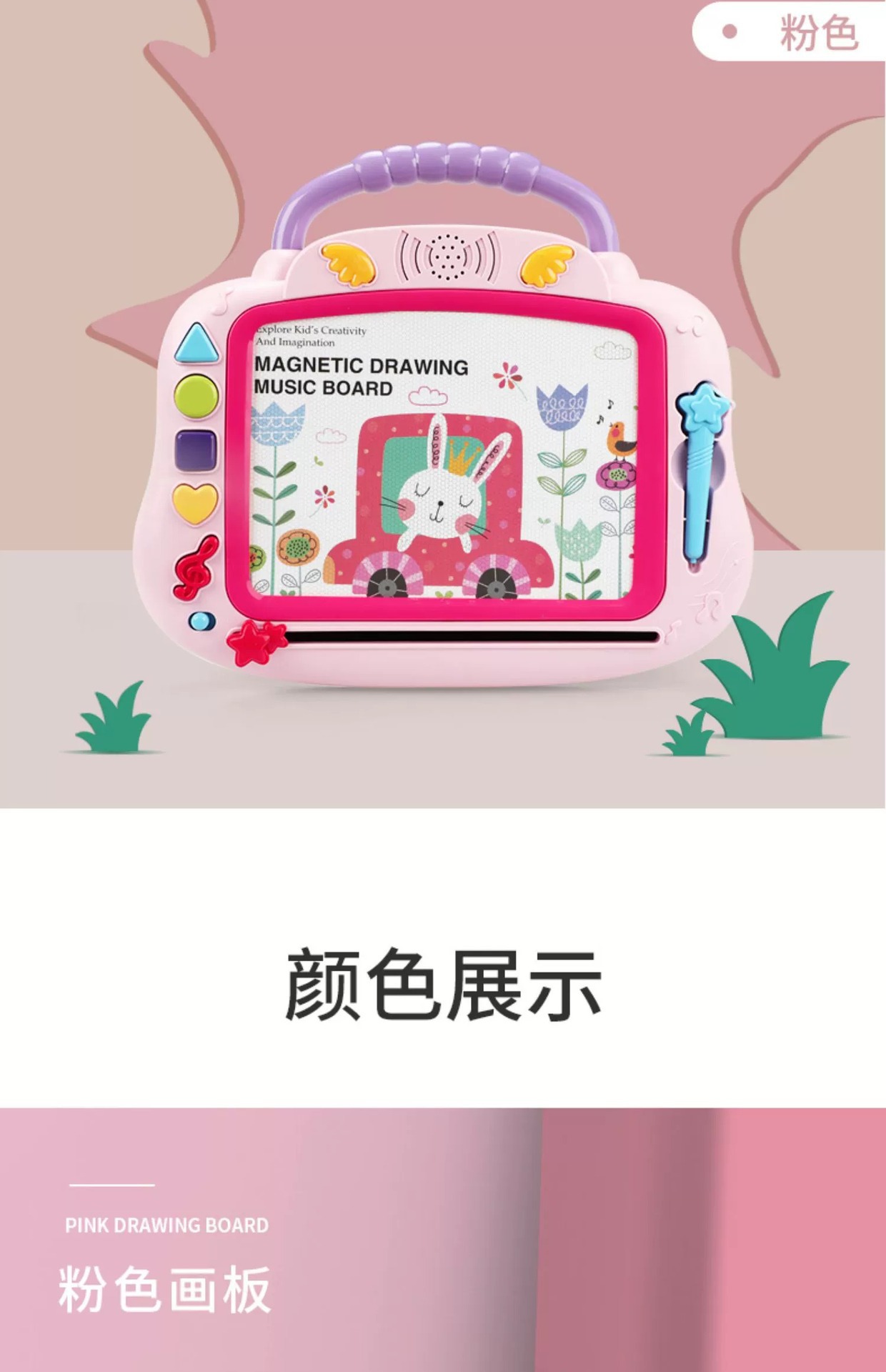 品名:灯光音乐磁性彩画板(粉色、蓝色)