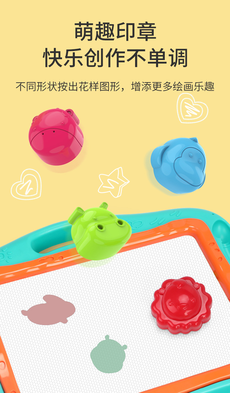 功能:萌趣动物印章;无尘流畅涂鸦;形状临摹启蒙;附赠12张彩色临摹卡