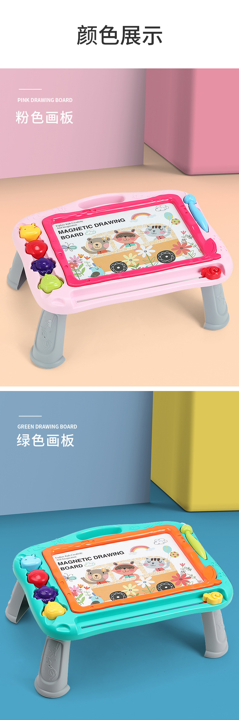 品名:磁性彩画板(粉色、蓝色)
