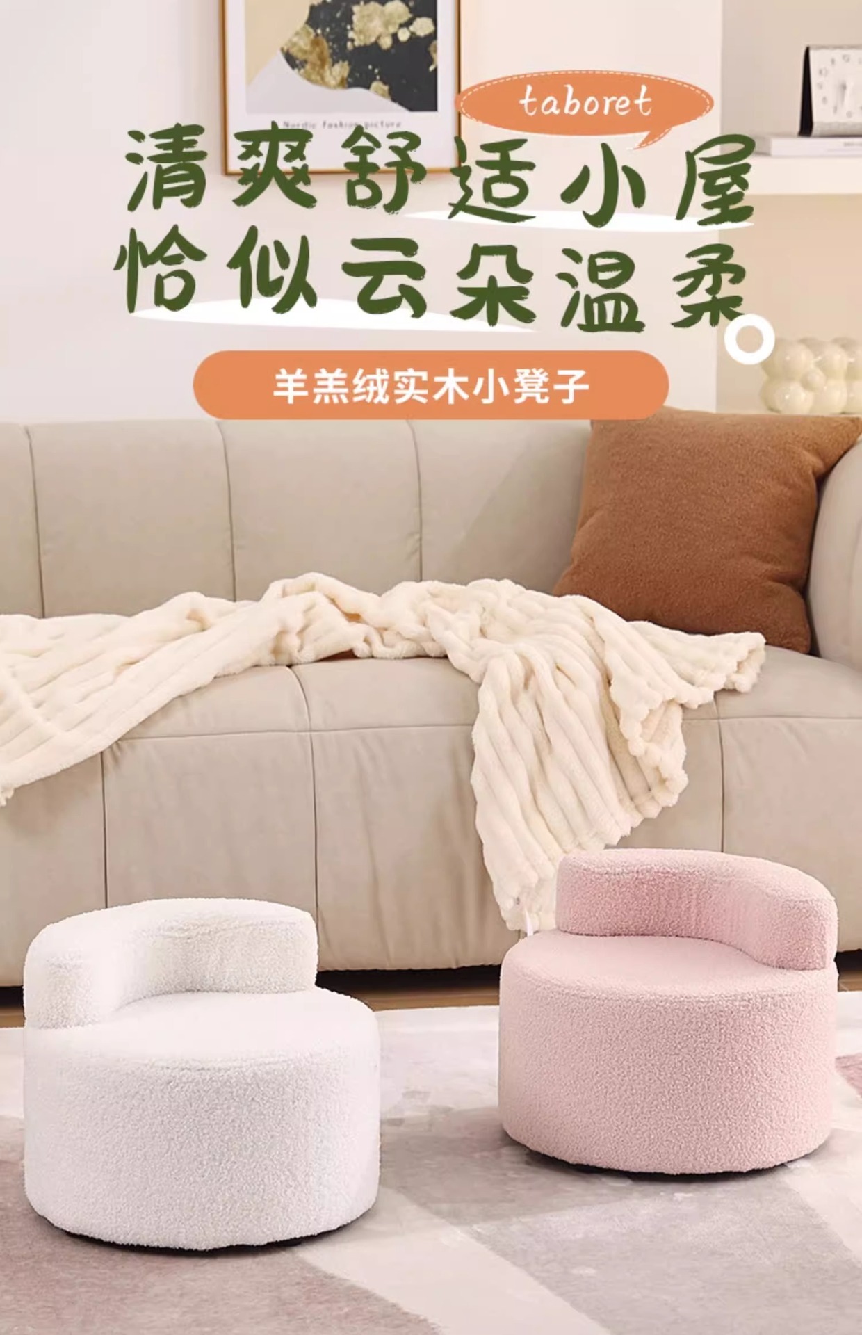 도매 아마존 양고기 양털 등받이 둥근 의자 낮은 의자 가정용 의자 현대 간단한 거실 소파 의자 신발 바꾸기스토어 가기