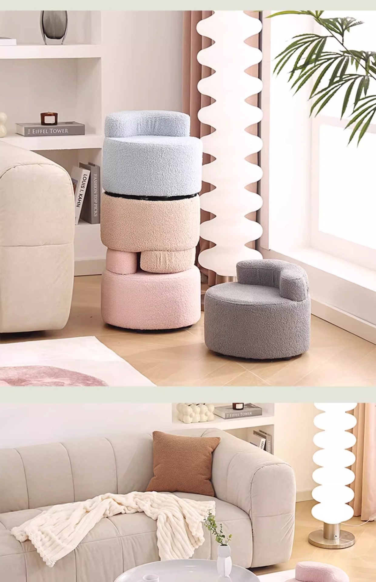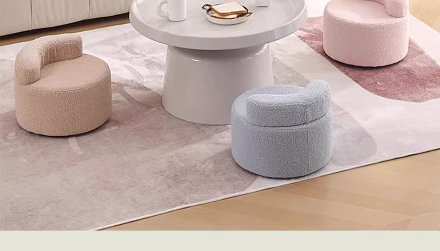 도매 아마존 양고기 양털 등받이 둥근 의자 낮은 의자 가정용 의자 현대 간단한 거실 소파 의자 신발 바꾸기