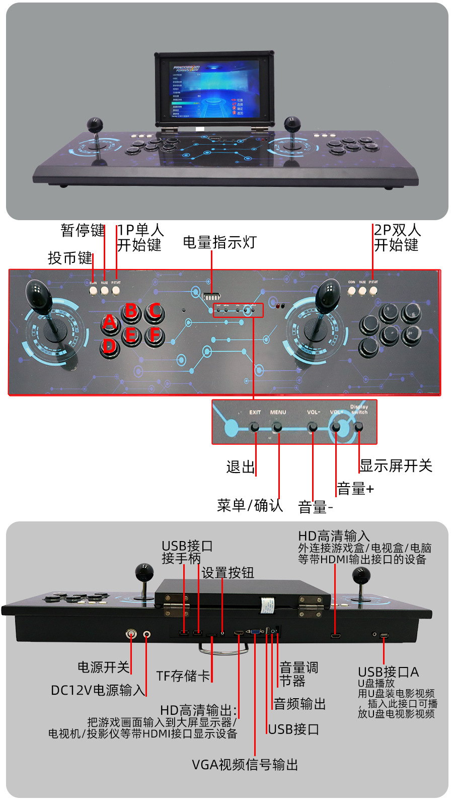휴대용 게임기는 10.1 인치 스크린 커버리지와 함께 제공됩니다. 판도라 달빛 보물 상자 통합 홈 아케이드