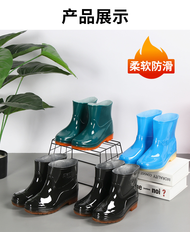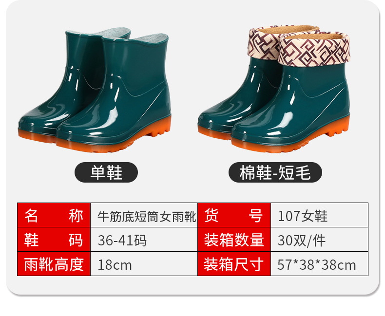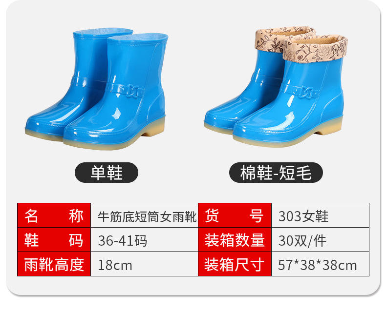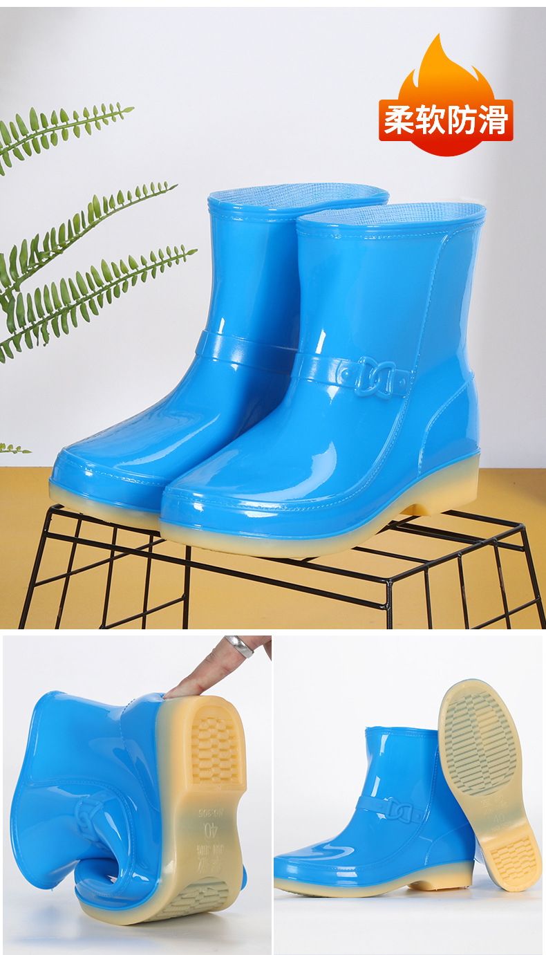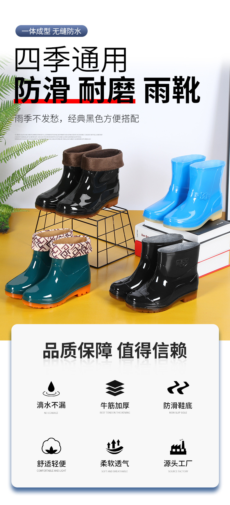 비 부츠 여성의 2024 새로운 물 신발 미끄럼 짧은 패션 성인 노동 보호 쇠고기 힘줄 바닥 두꺼운 바닥 도매 대외 무역스토어 가기