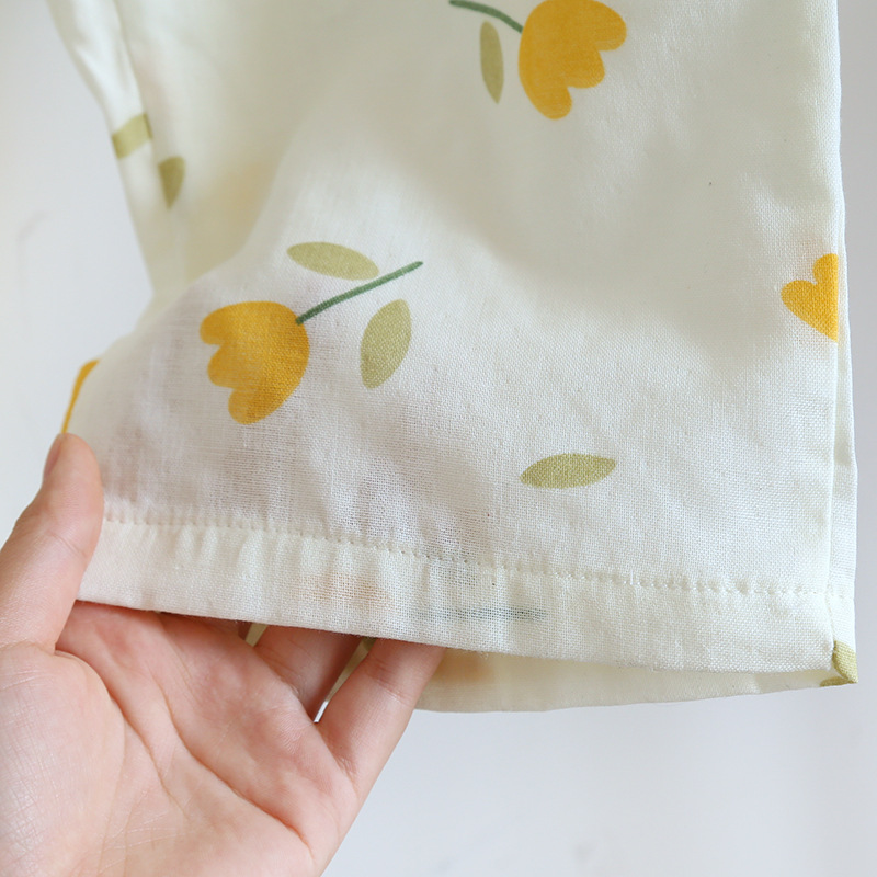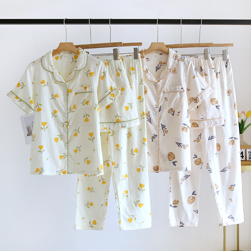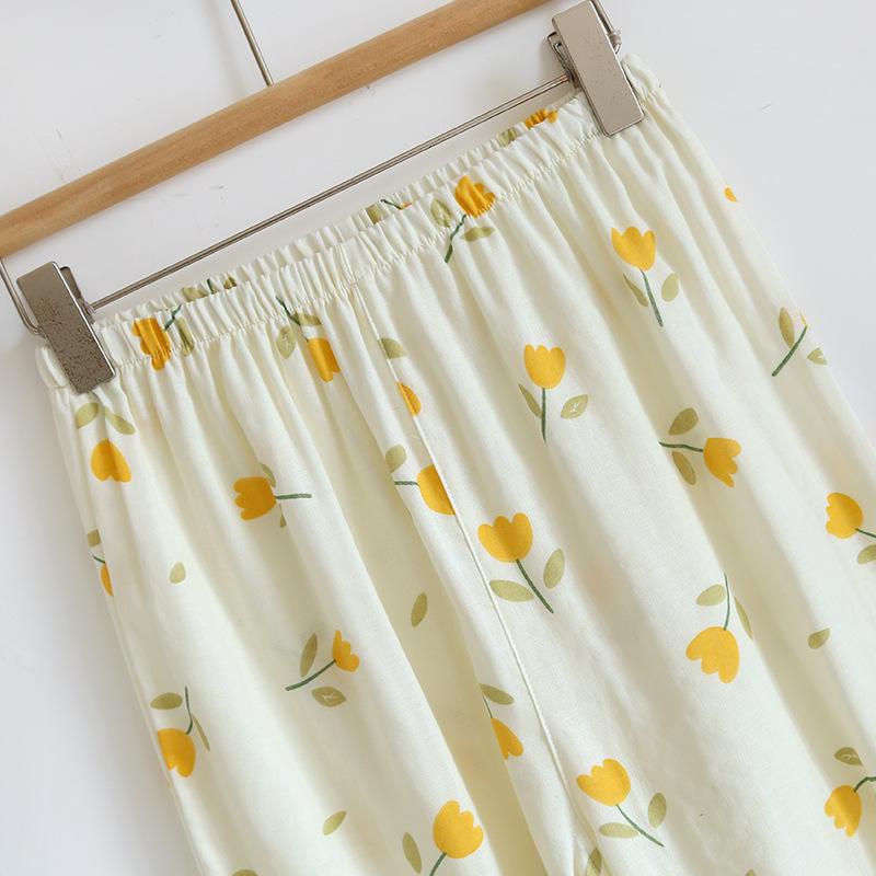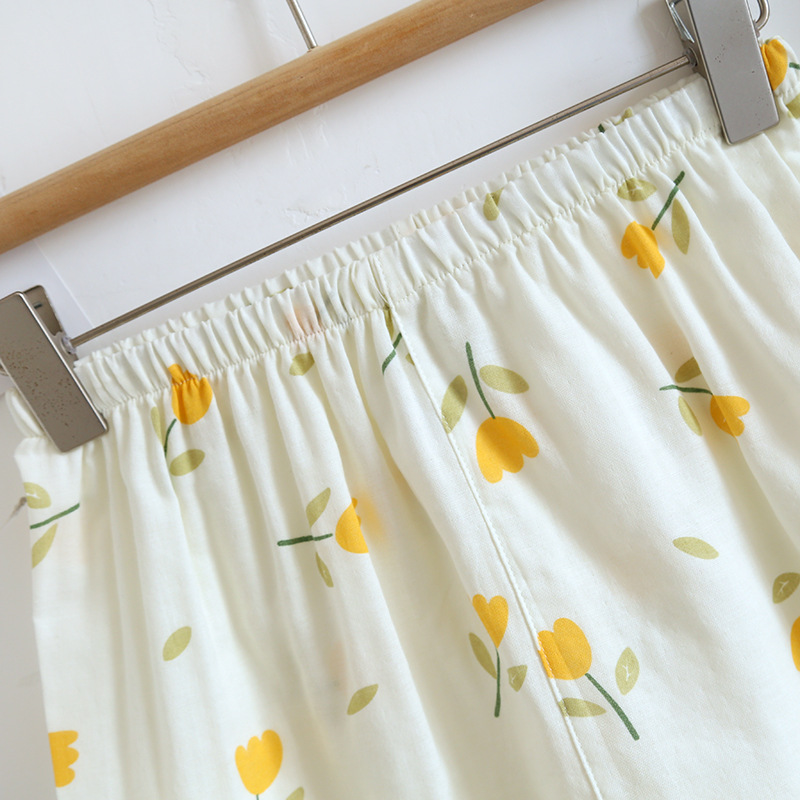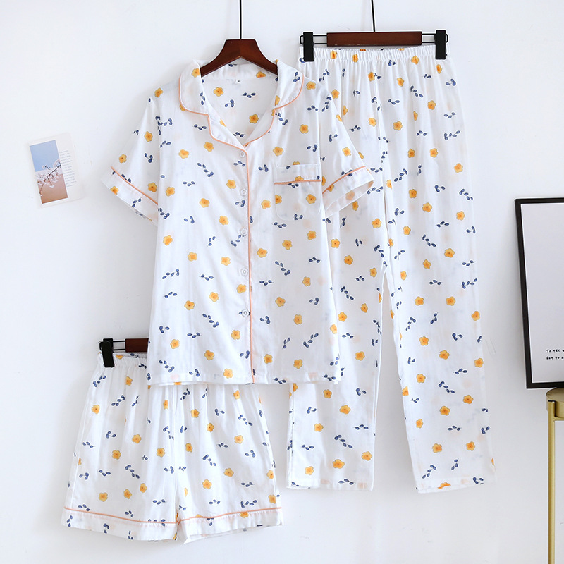 면 잠옷 세트 여성용 거즈 튤립 홈 옷 3 종 반팔 반바지 바지 홈 세트스토어 가기