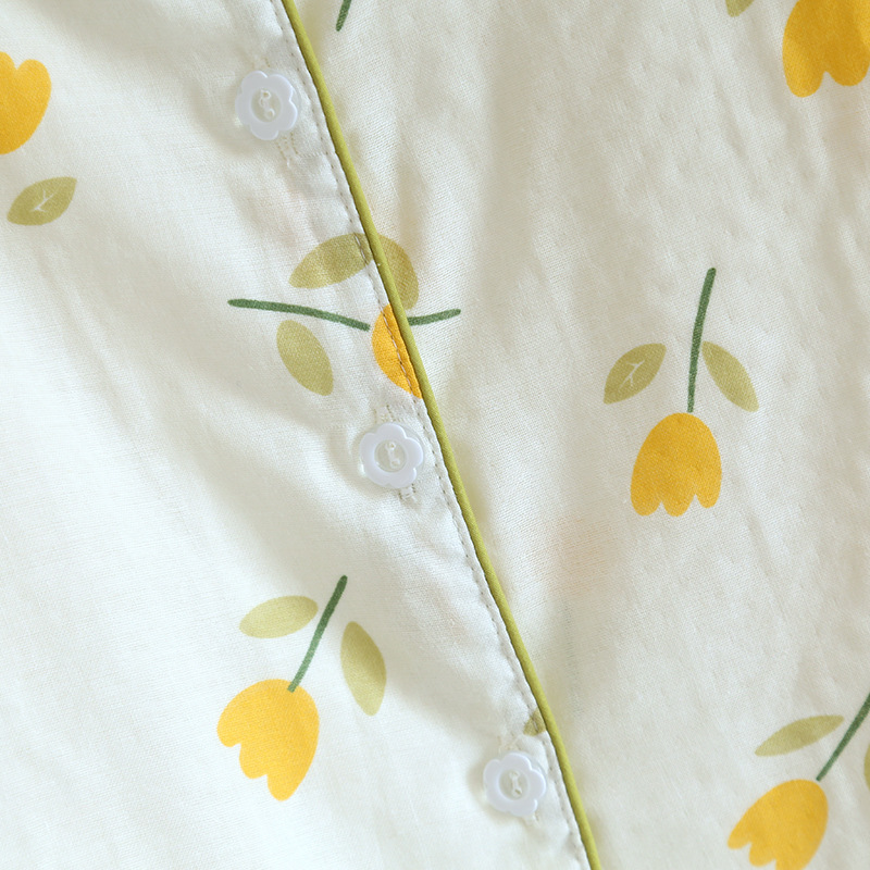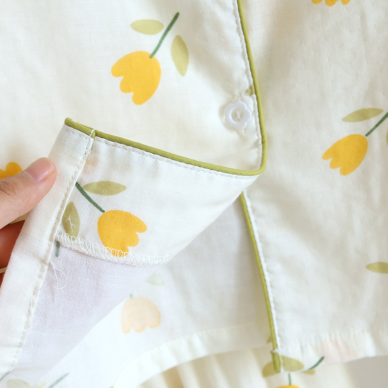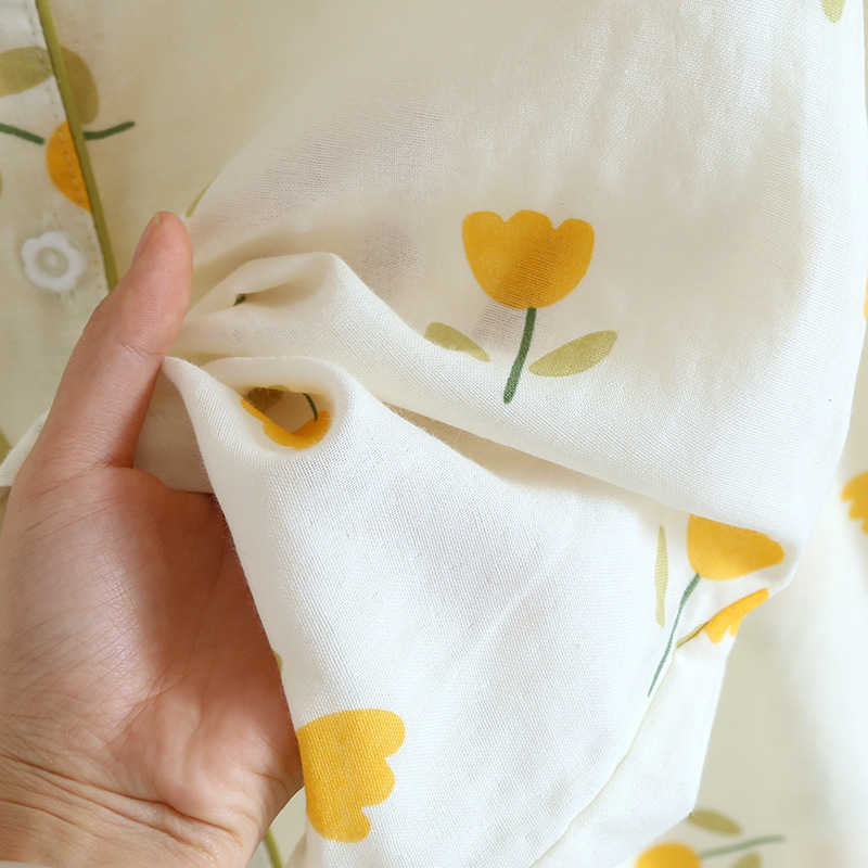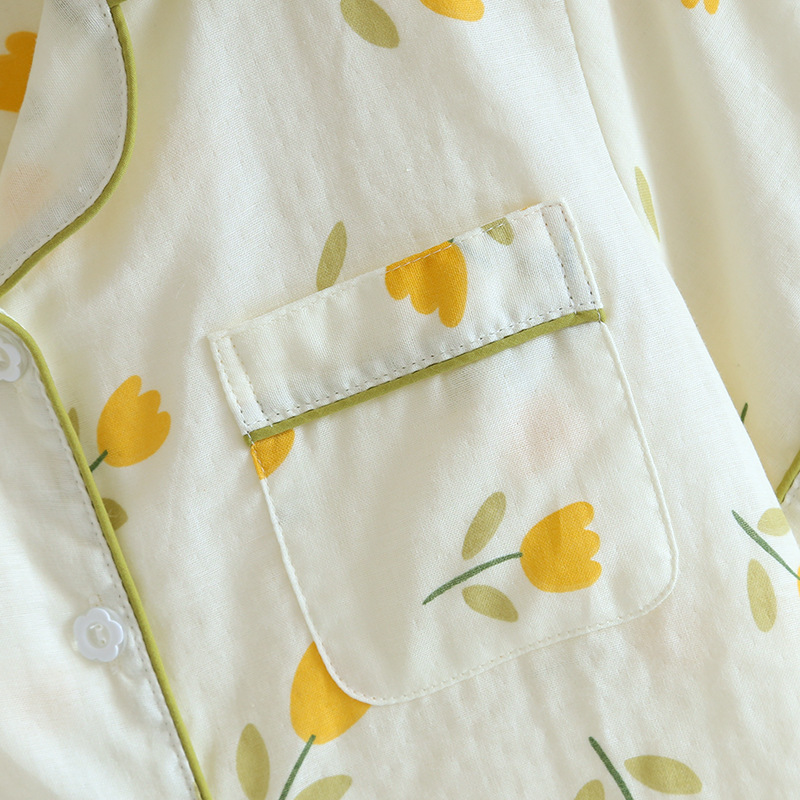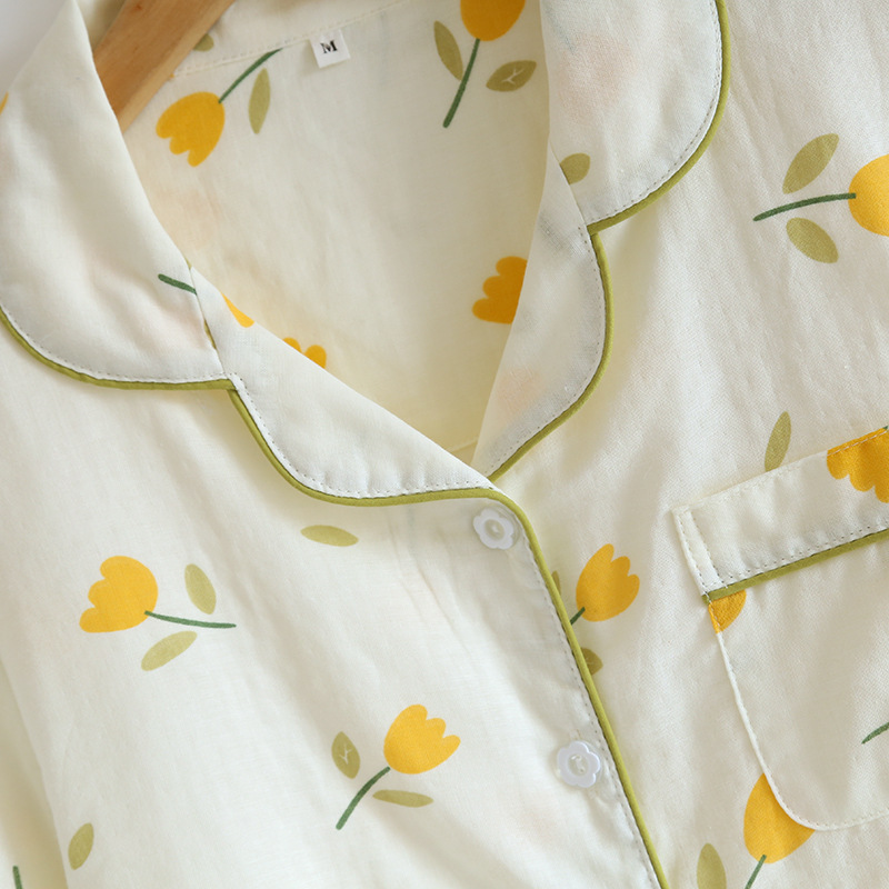 면 잠옷 세트 여성용 거즈 튤립 홈 옷 3 종 반팔 반바지 바지 홈 세트스토어 가기