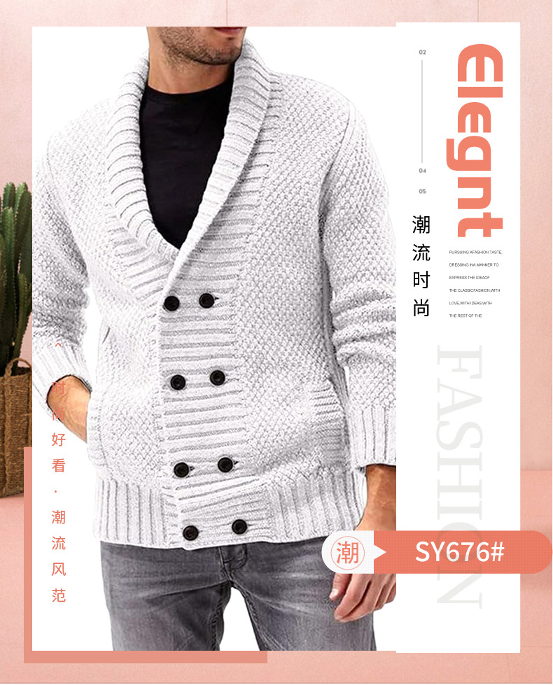 국경 간 아마존 남성 니트 최고 가을과 겨울 새로운 패션 간단한 단색 남성 편안한 긴 소매 옷깃스토어 가기