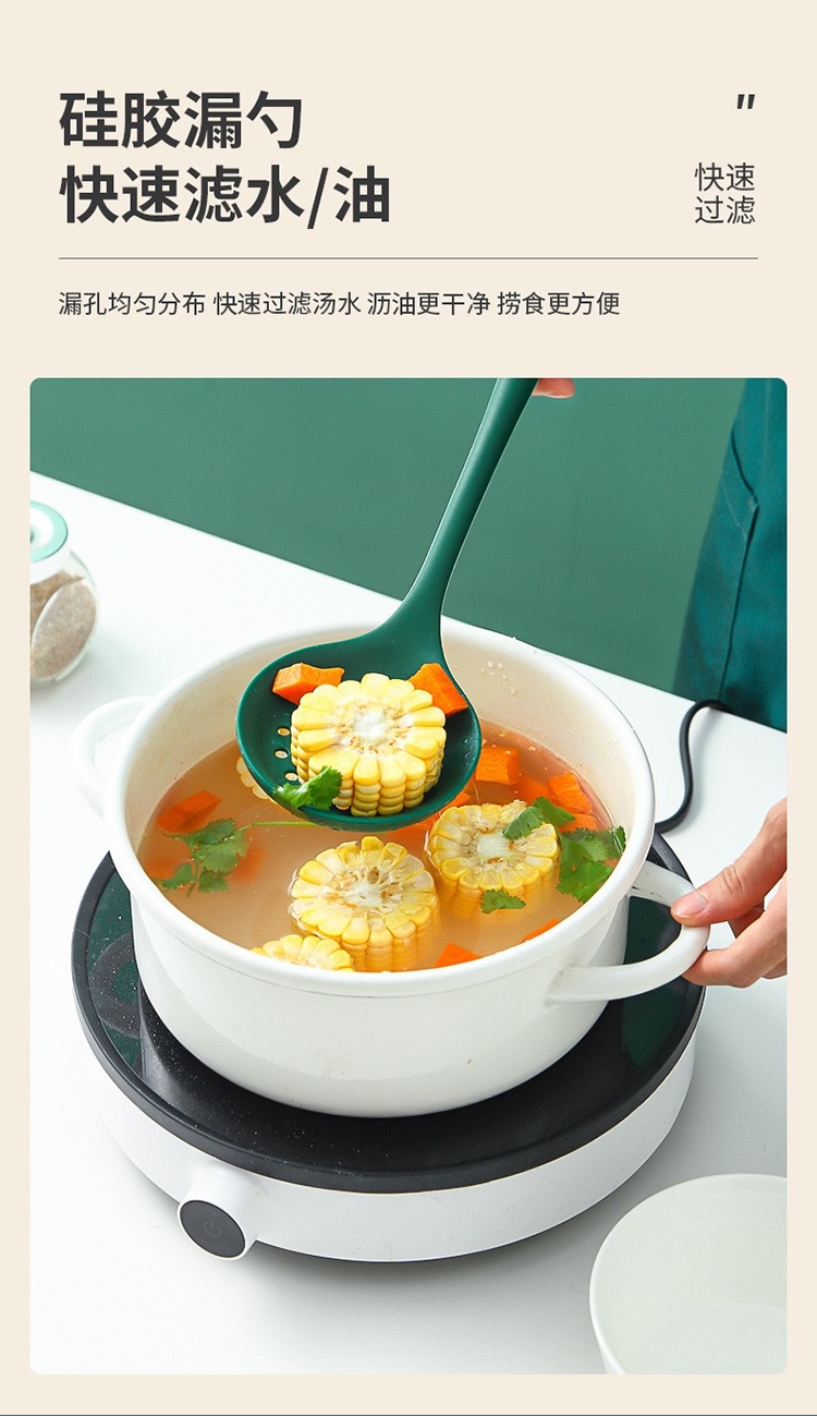 식품등급 붙지 않는 특수 주걱, 가정용 실리콘 주걱, 소쿠리, 수프 스푼, 주방용품이 포함된 고온 방지 실리콘 세트