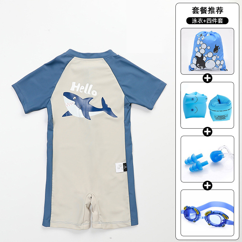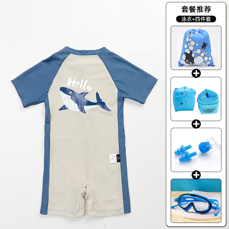 한국 어린이 수영복 소년 반소매 태양저항성 급건조 온천소년 아기 손수영복… 중소형 어린이