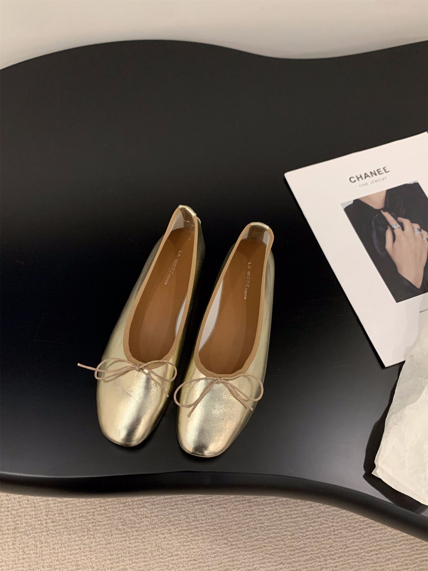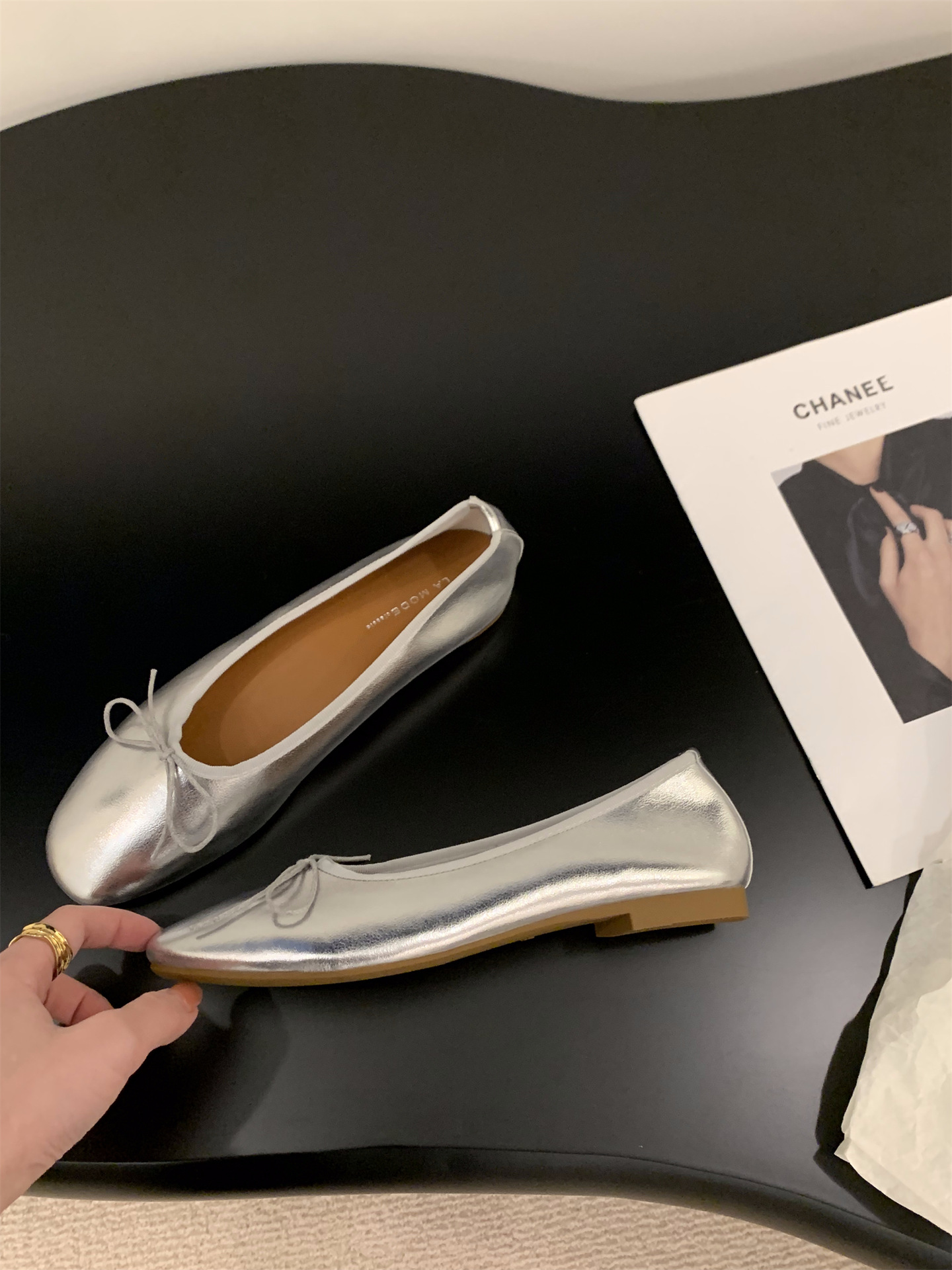 프랑스 평면 바닥 실버 싱글 신발 여성 신발 봄과 가을 2024 새로운 봄 저녁 부드러운 발레 신발 콩 신발스토어 가기