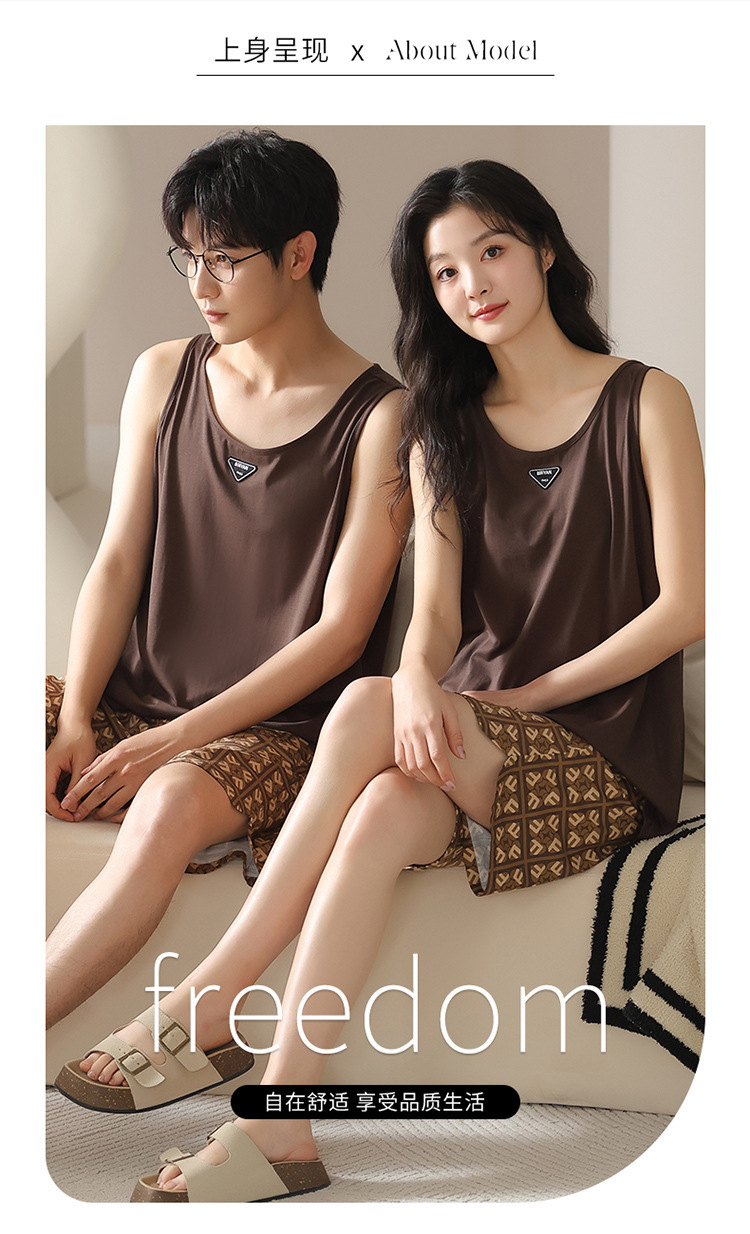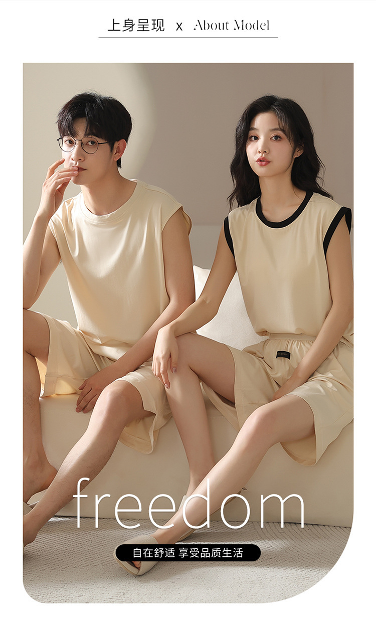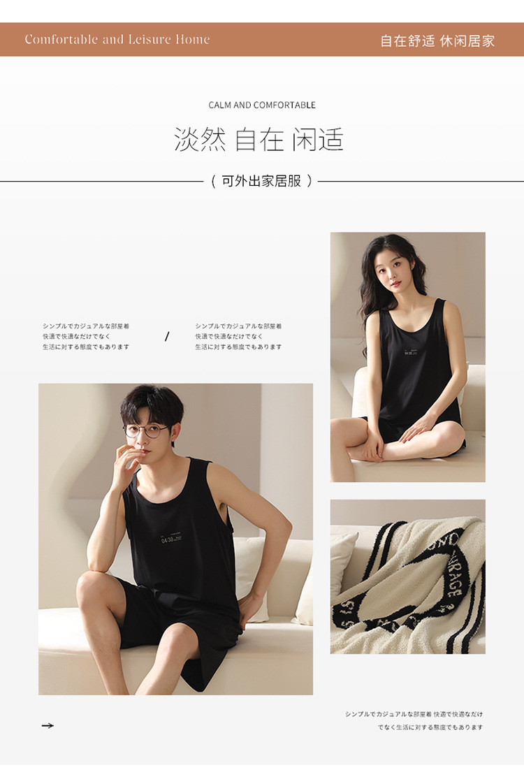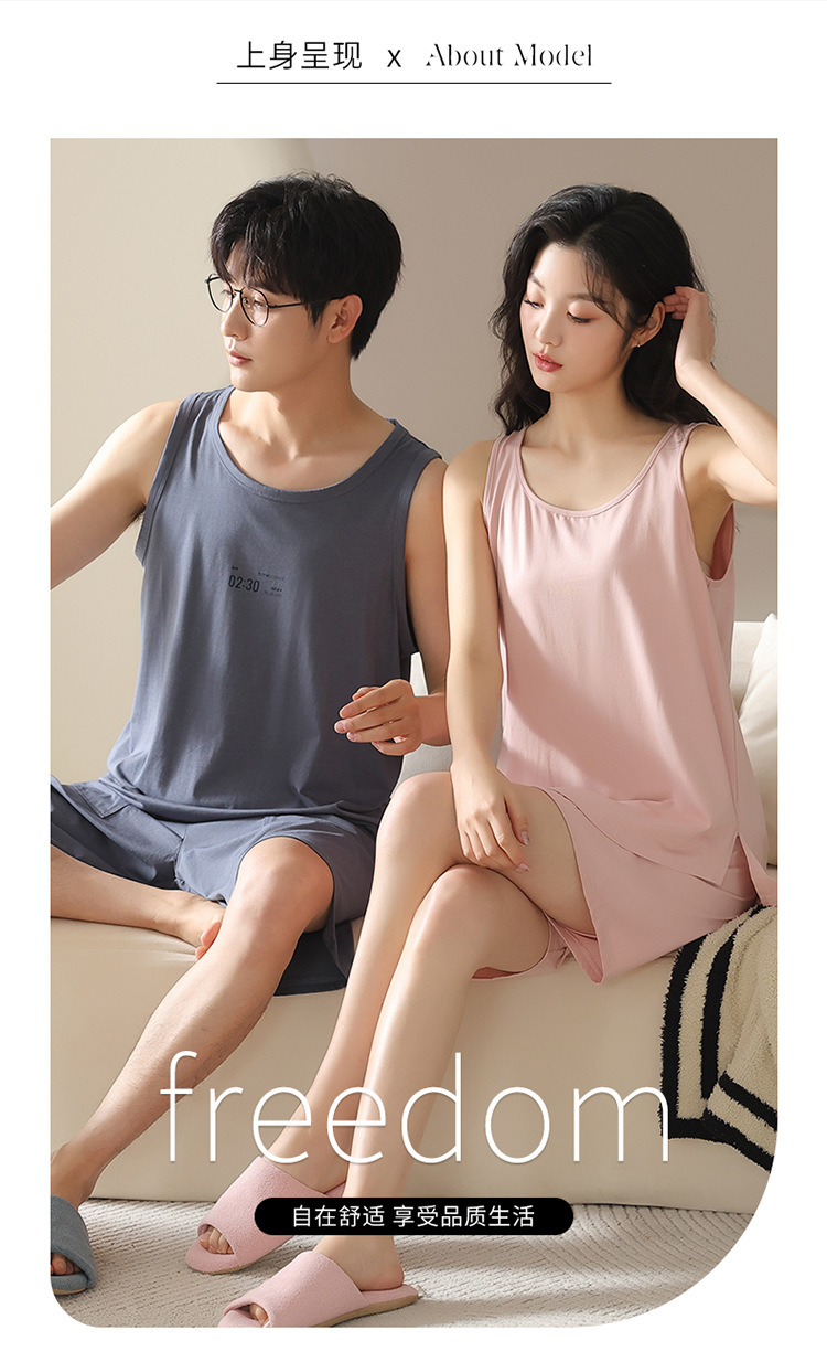 모달 커플 잠옷 여성의 여름 조끼 반바지 한 여성 한 남성 얇은 대형 남성 홈 세트스토어 가기