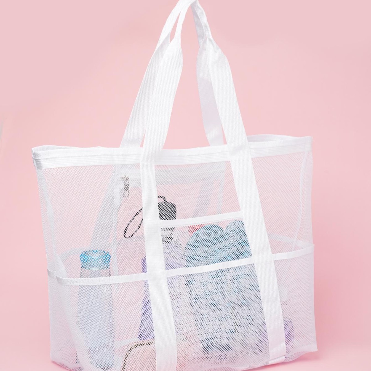비치 백 아마존 메쉬 비치 백 8 포켓 욕실 가방 장난감 보관 가방 대용량 메쉬 빈 가방스토어 가기