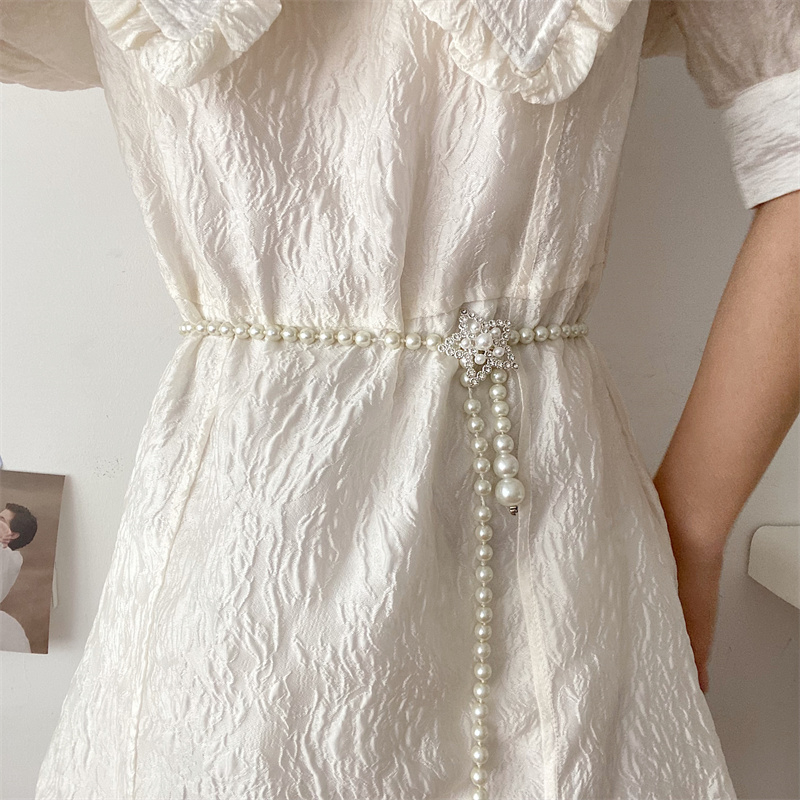 진주 체인 벨트 여성용 하이 엔드 작은 샤넬 스타일 올 매치 장식 치마 원피스 허리 체인 액세서리 Fine New스토어 가기