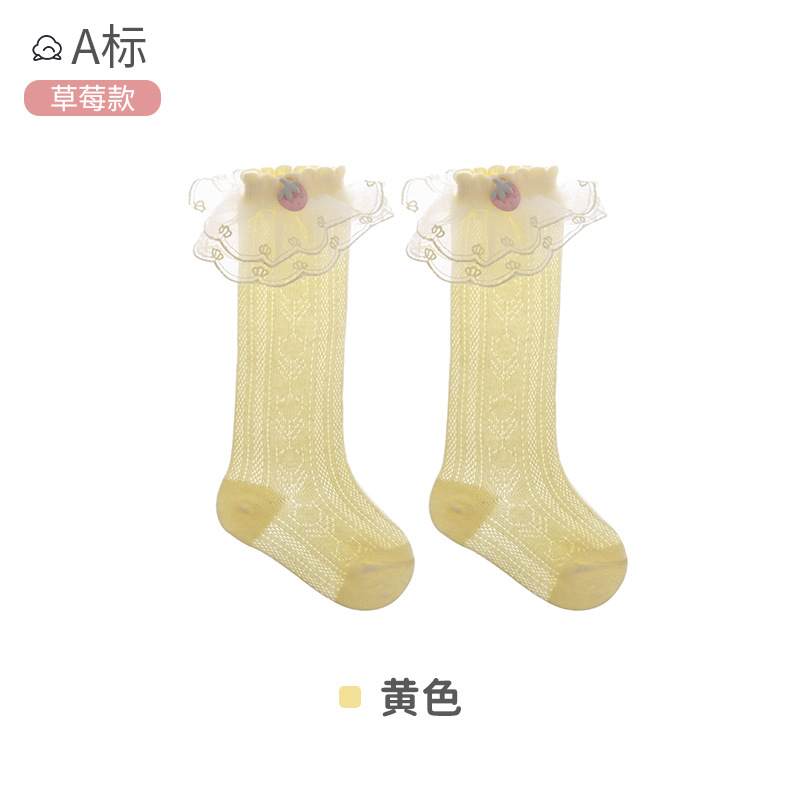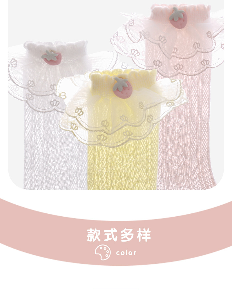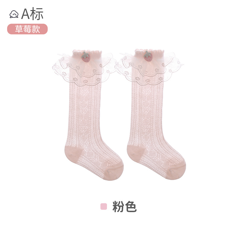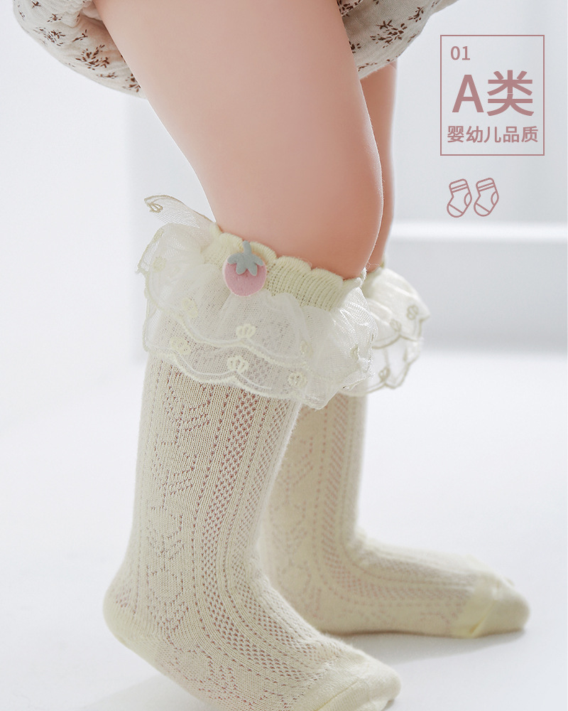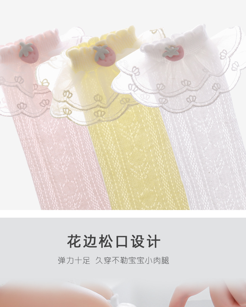 아기 레이스 스타킹 봄과 여름 메쉬 코튼 신생아 귀여운 딸기 스타킹 레이스 달콤한 공주 양말 도매스토어 가기