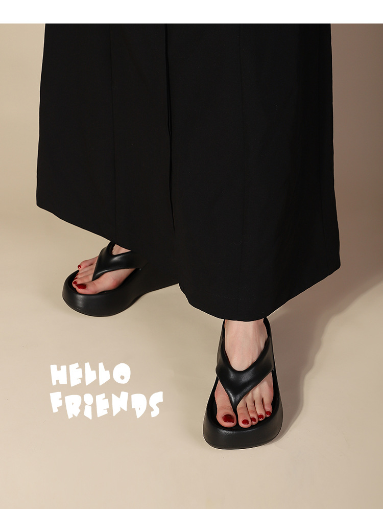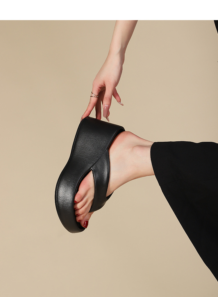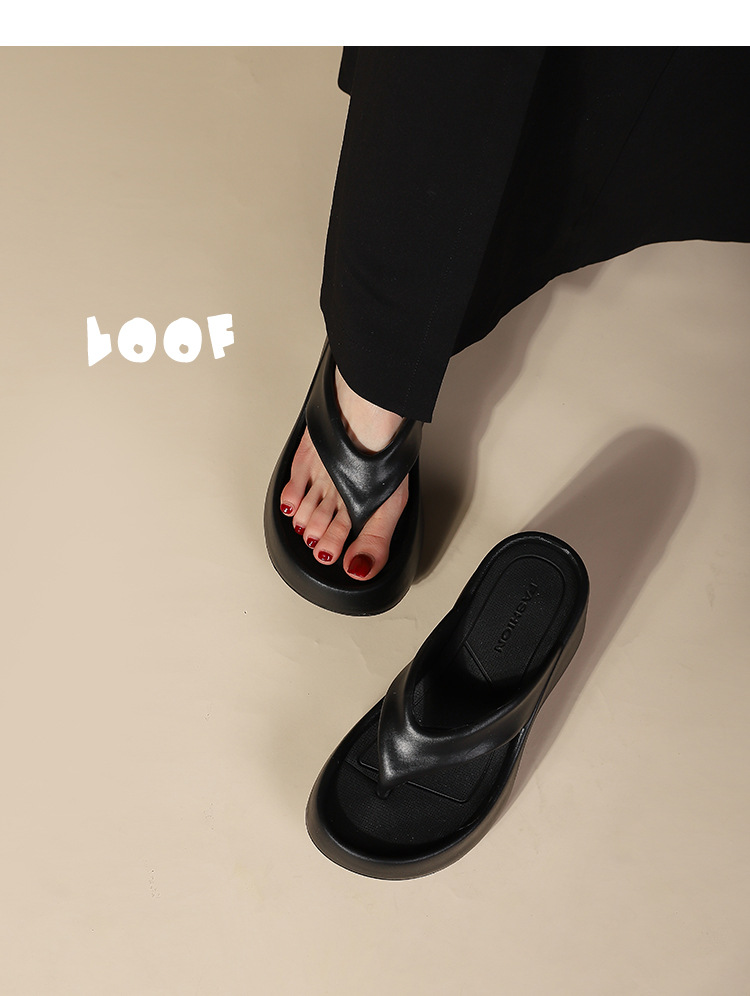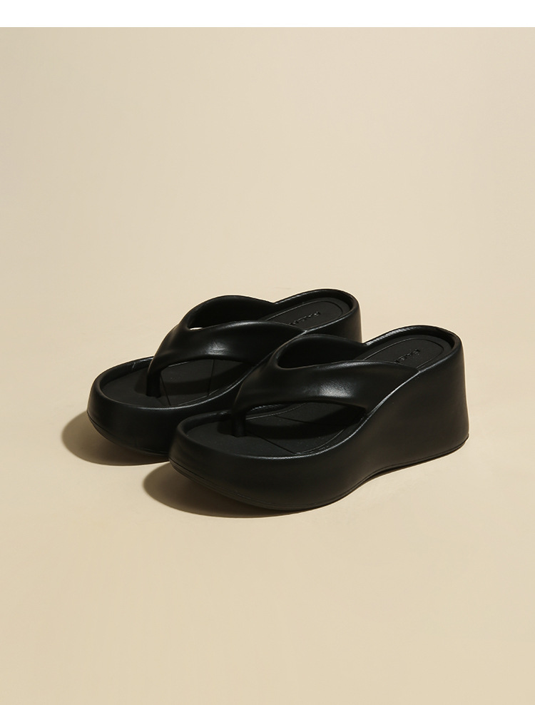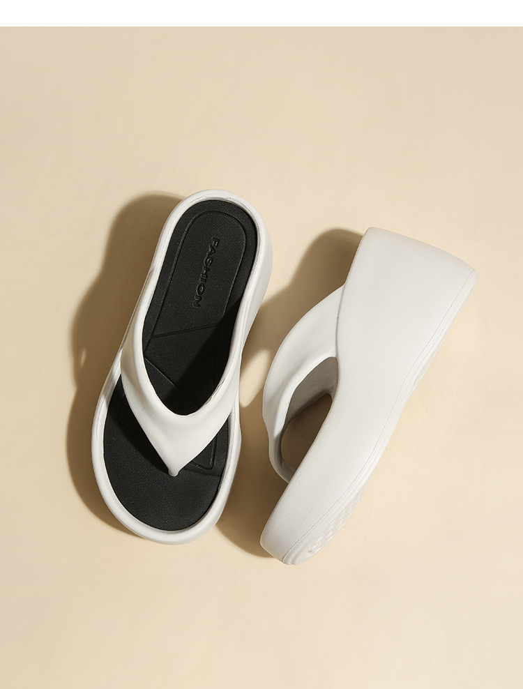 하이힐이 두꺼운 플립 플롭 여성용 아우터웨어 여름 새로운 미끄럼 방지 해변 플립 플롭 강화 여성용 샌들