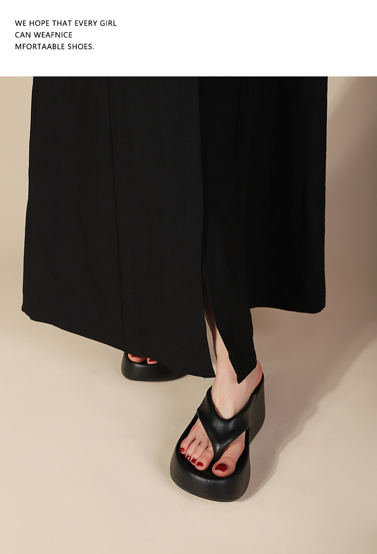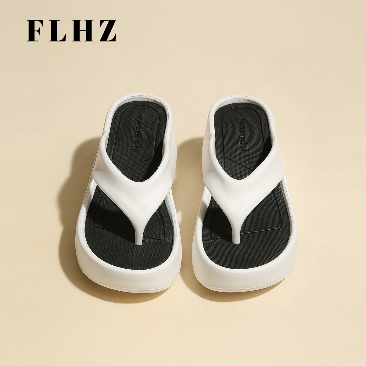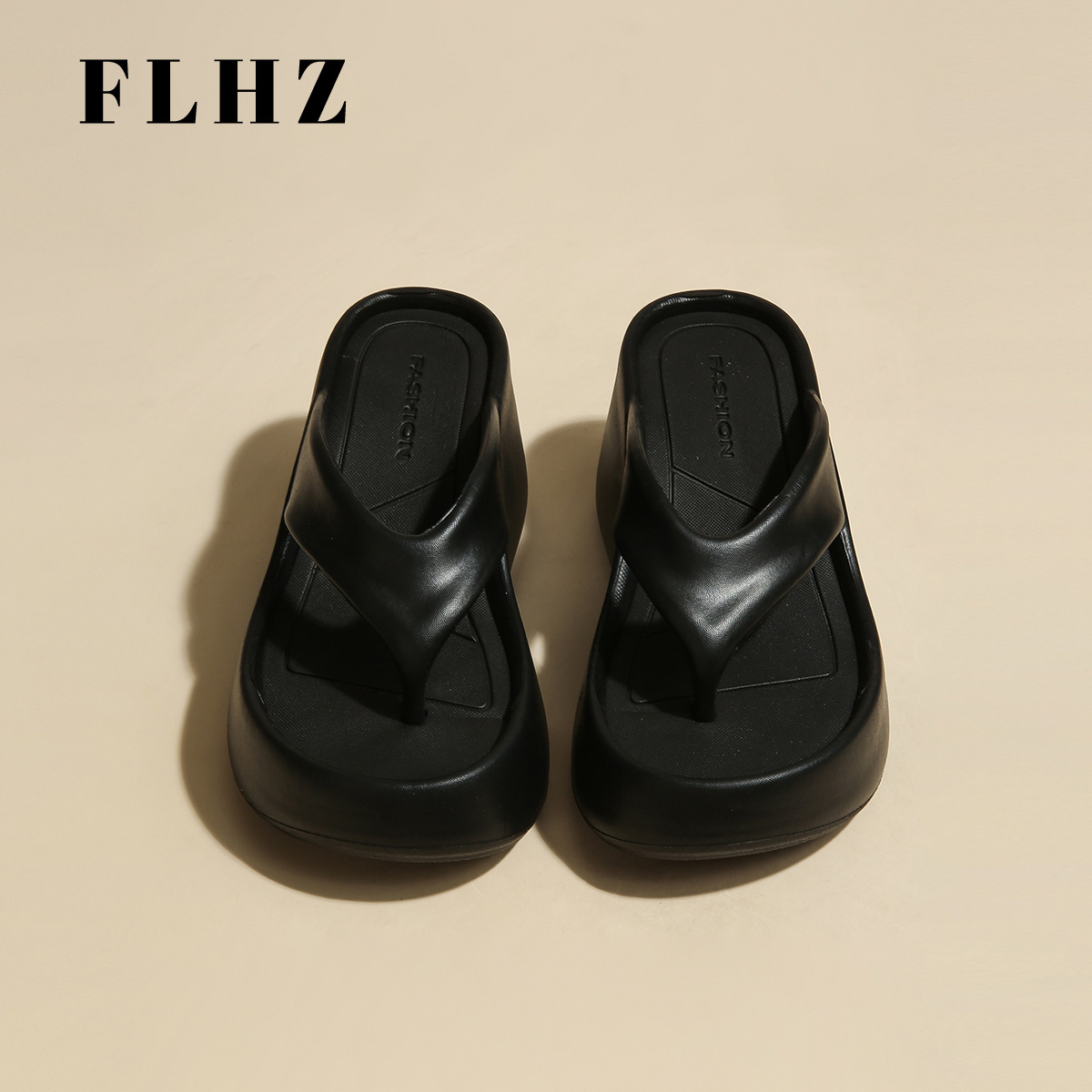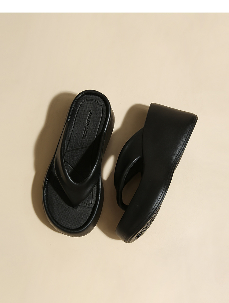 하이힐이 두꺼운 플립 플롭 여성용 아우터웨어 여름 새로운 미끄럼 방지 해변 플립 플롭 강화 여성용 샌들스토어 가기
