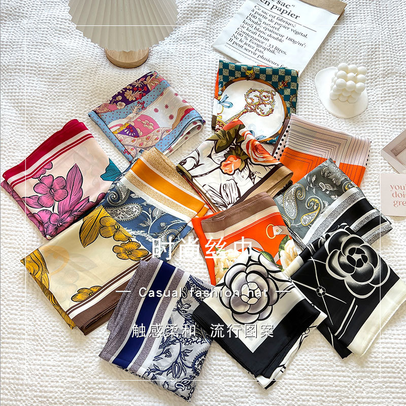 하이 퀄리티 한국식 실크 스카프 여자 작은 광장 스카프 올 매치 실크와 같은 다기능 헤어 밴드 봄, 여름, 가을 얇은 스카프스토어 가기