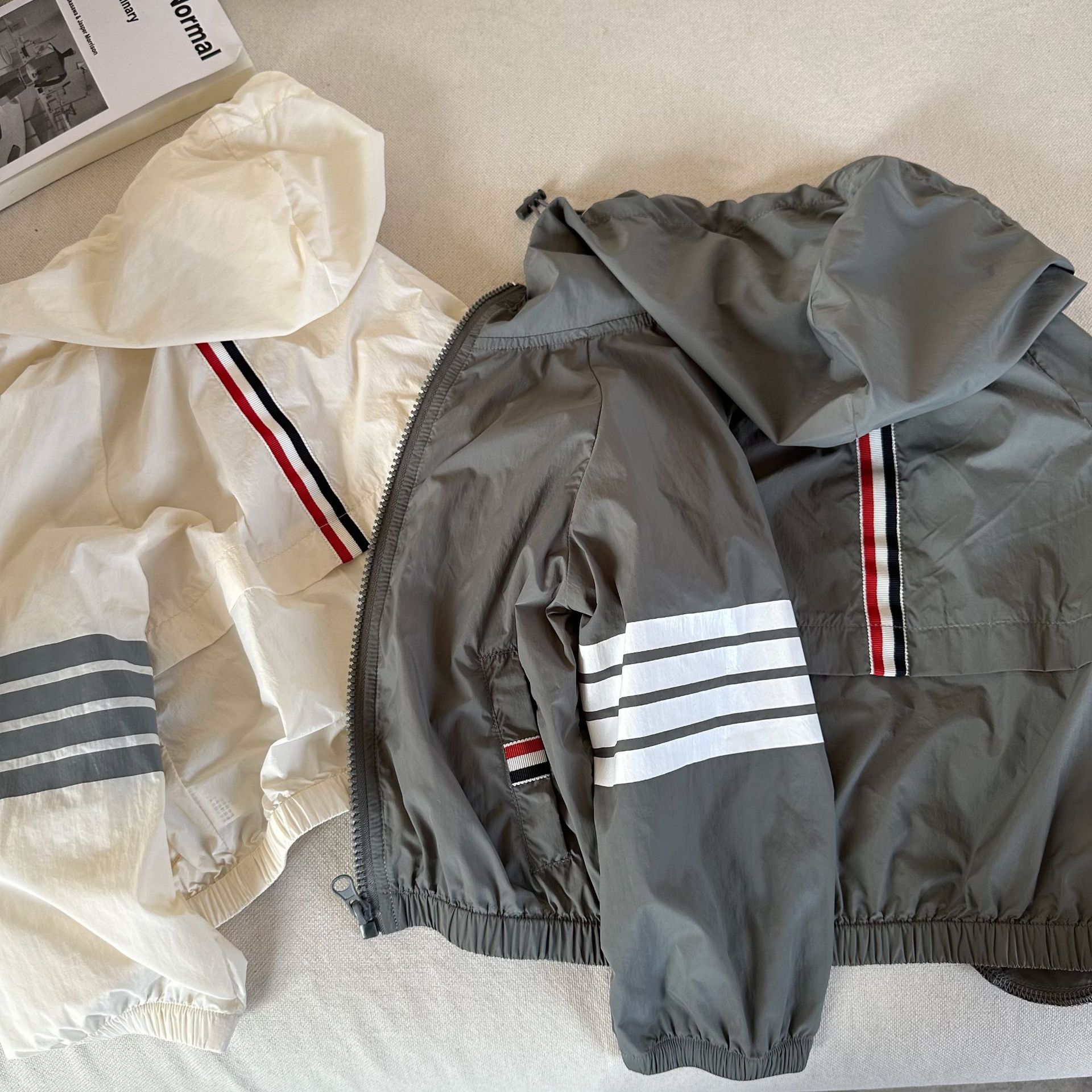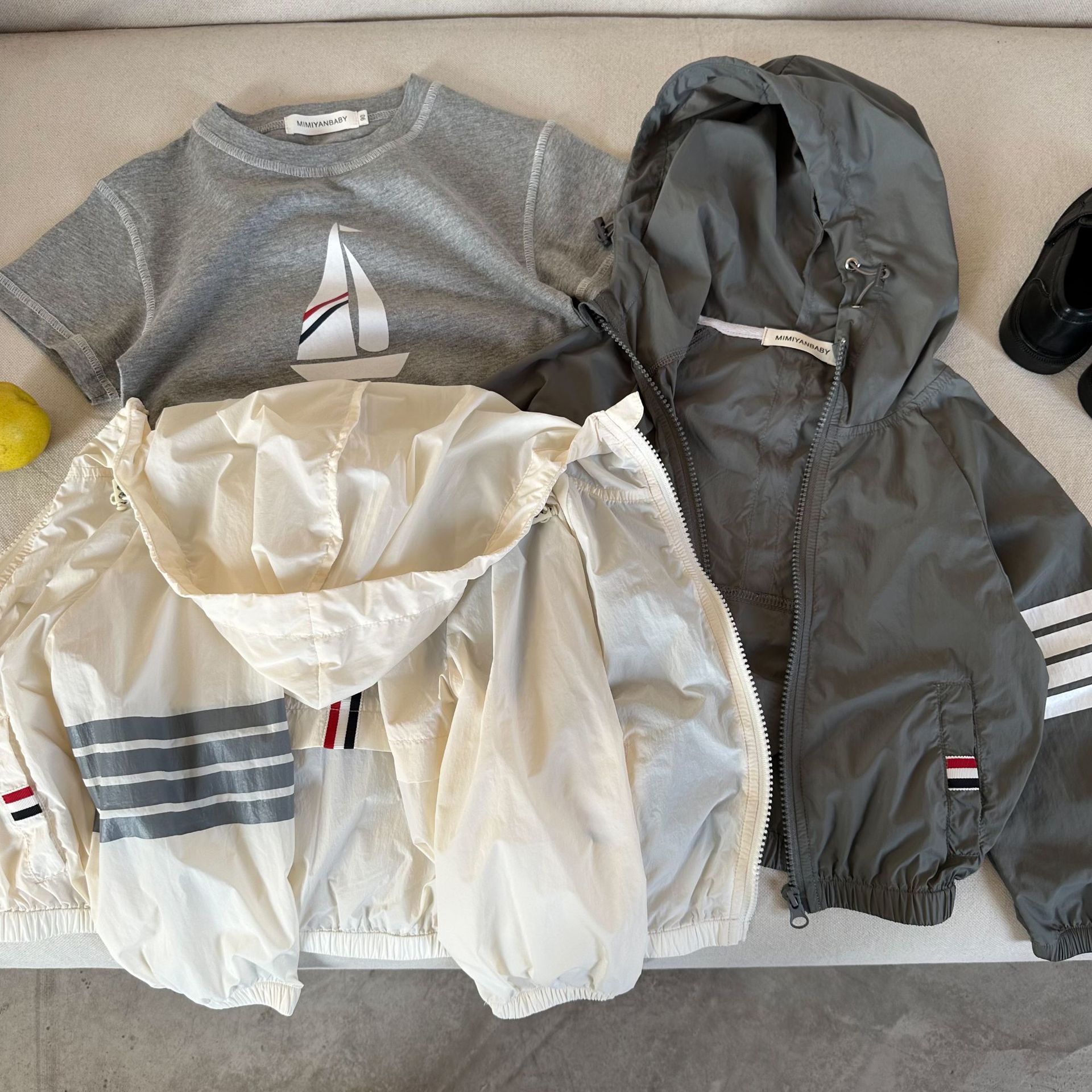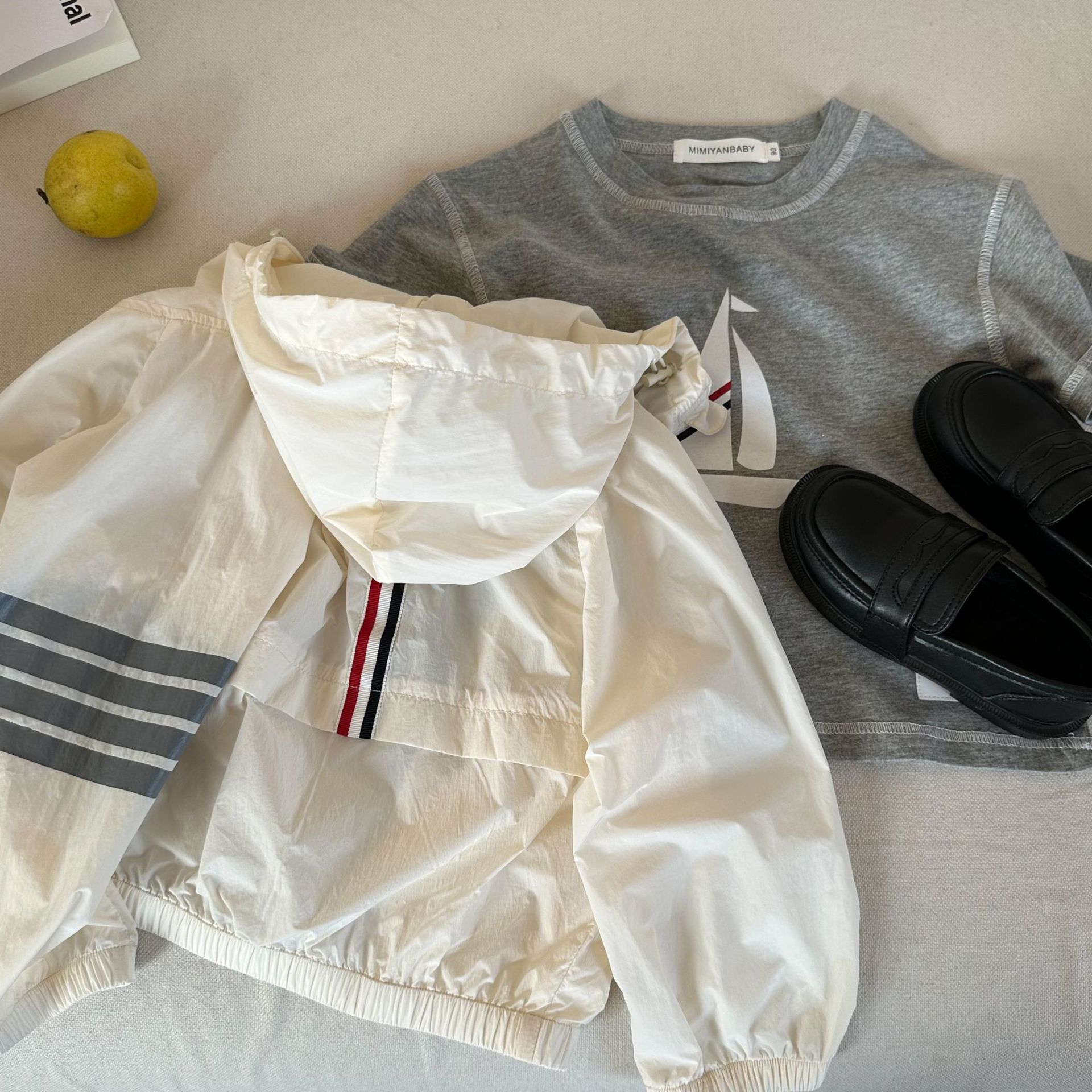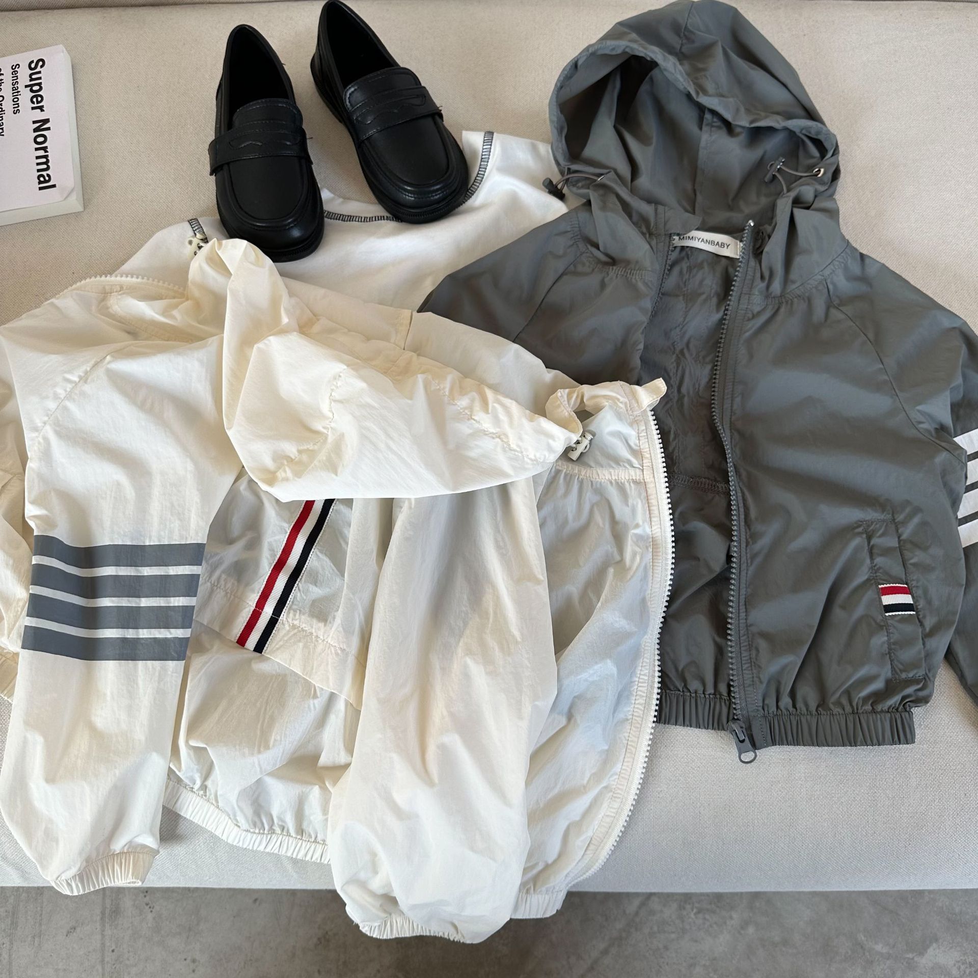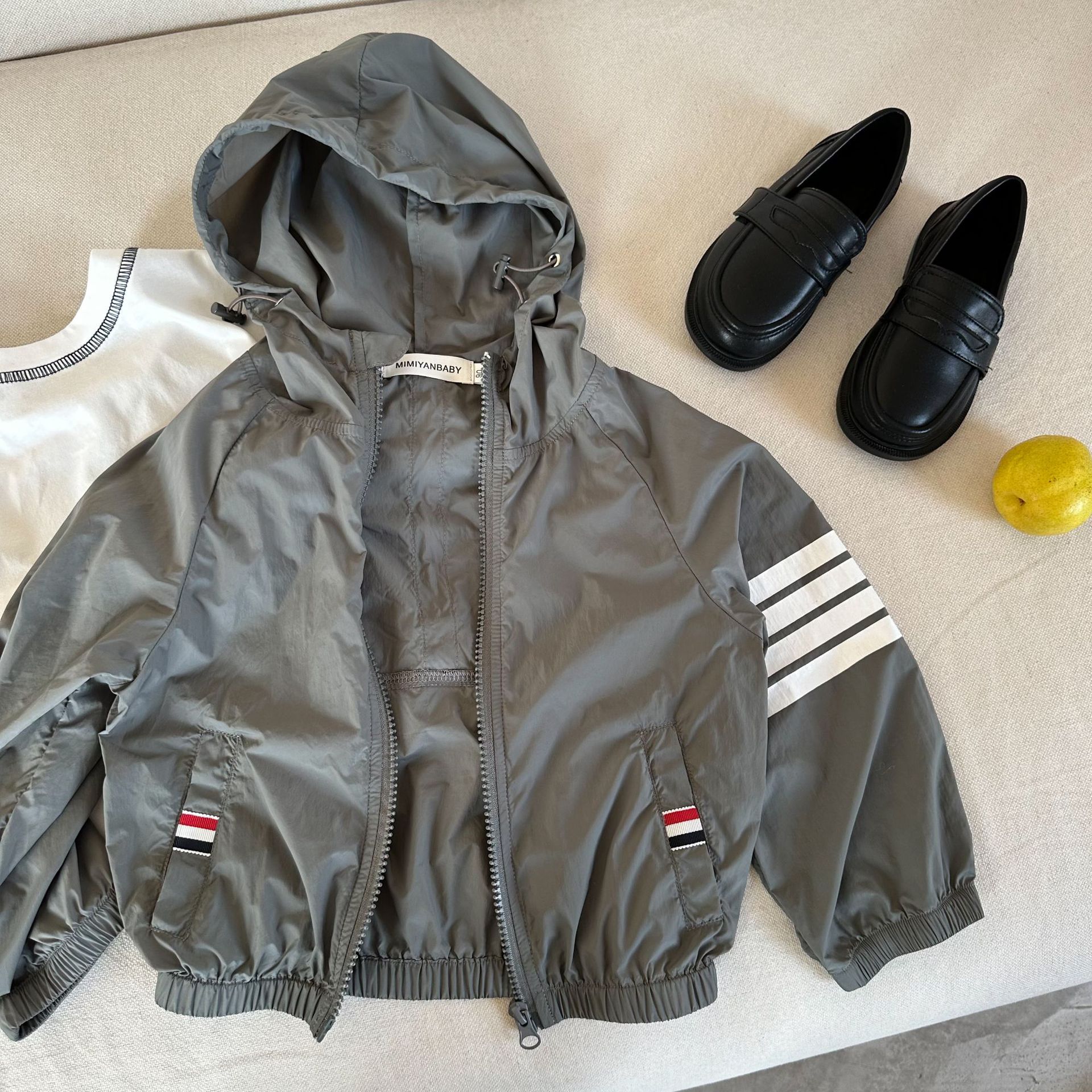 아동 코트 2025 여름 한국 스타일 소년과 소녀를위한 새로운 스타일 후드 자외선 차단 의류 아기 맞춤형 피부 의류 유행스토어 가기