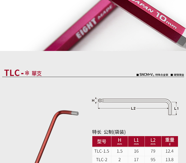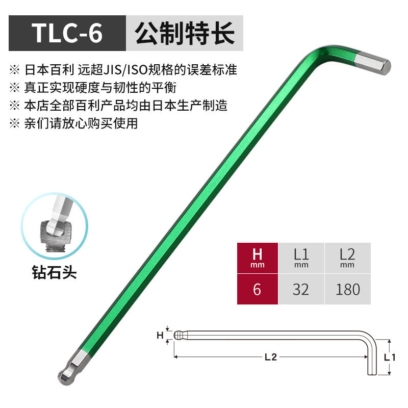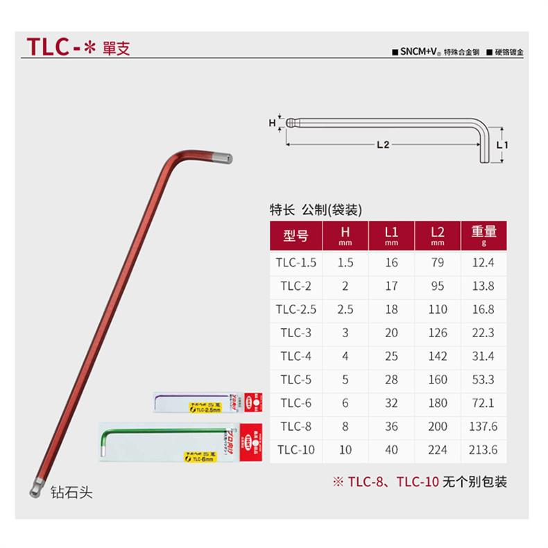 새로운 일본 8 월 베일리 컬러 볼 헤드 앨런 렌치 TLC-1.5 2 2.5 3 4 5 6 8MM
