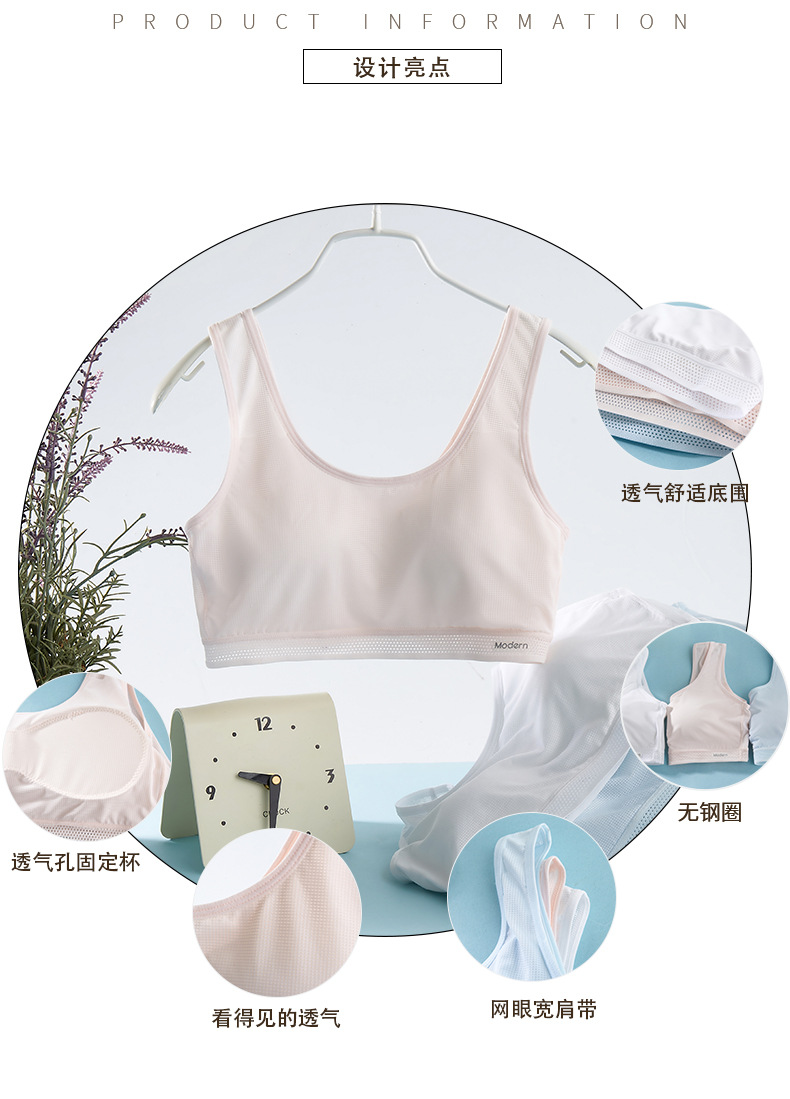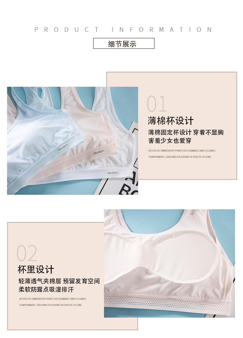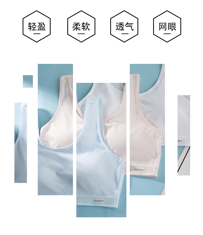 여자 발달 속옷 여름 통기성 고정 컵 중학교 고등학교 고등학교 스포츠 학생 청소년 작은 조끼 브래지어