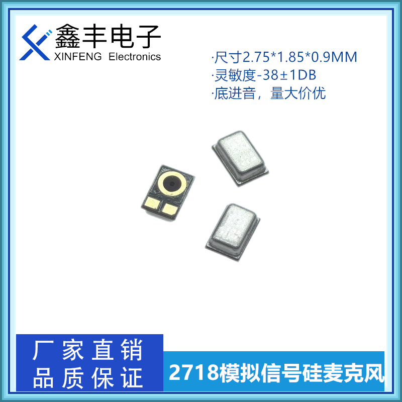 高灵敏-38±1DB的2718底进音,MEMS硅麦克风,一致性好,信噪比高。库存充足。