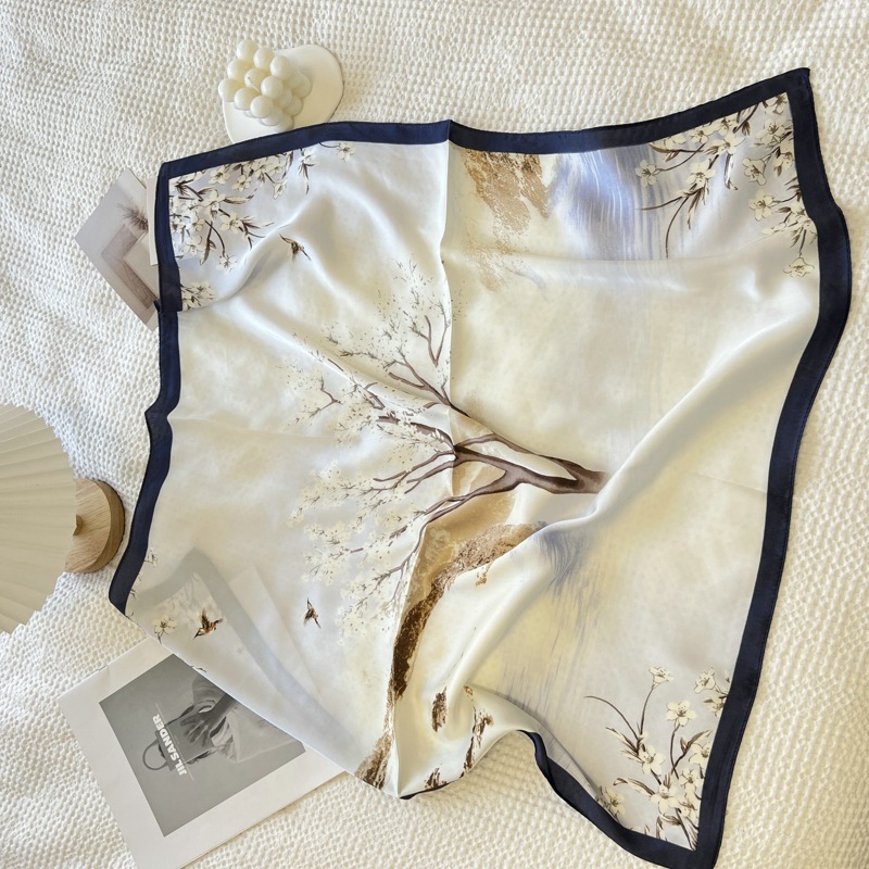 빈티지 프랑스 스타일 실크 스카프 머리띠 여성 넥타이 헤어 머리띠 머리띠 인스타그램 인기 인터넷 인기 2024 새로운 대형 스퀘어 스카프스토어 가기