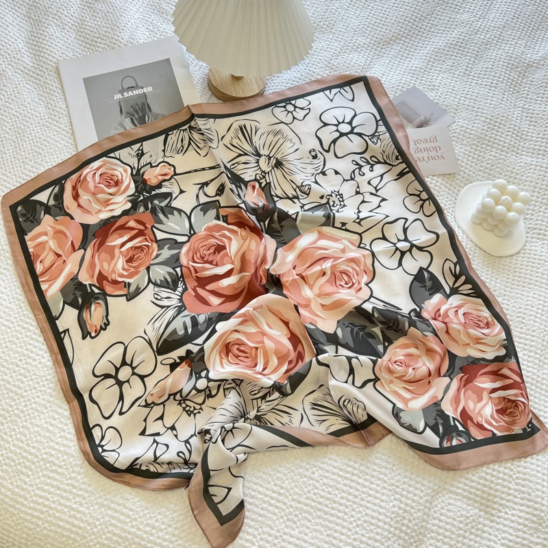 빈티지 프랑스 스타일 실크 스카프 머리띠 여성 넥타이 헤어 머리띠 머리띠 인스타그램 인기 인터넷 인기 2024 새로운 대형 스퀘어 스카프